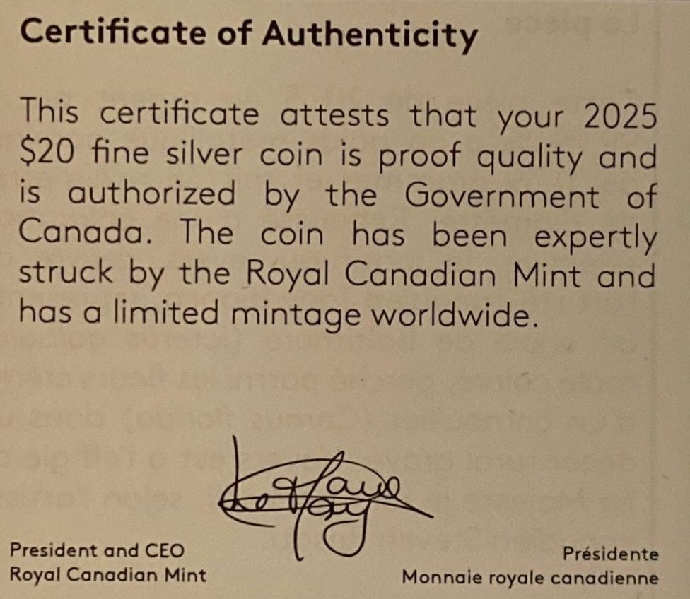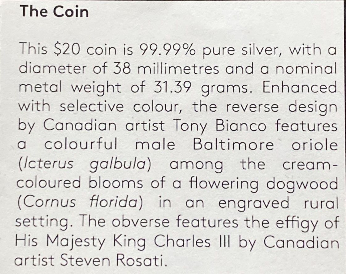 Lot 103 2025 $20 Baltimore Oriole Fine Silver Coin 31.39 Grams