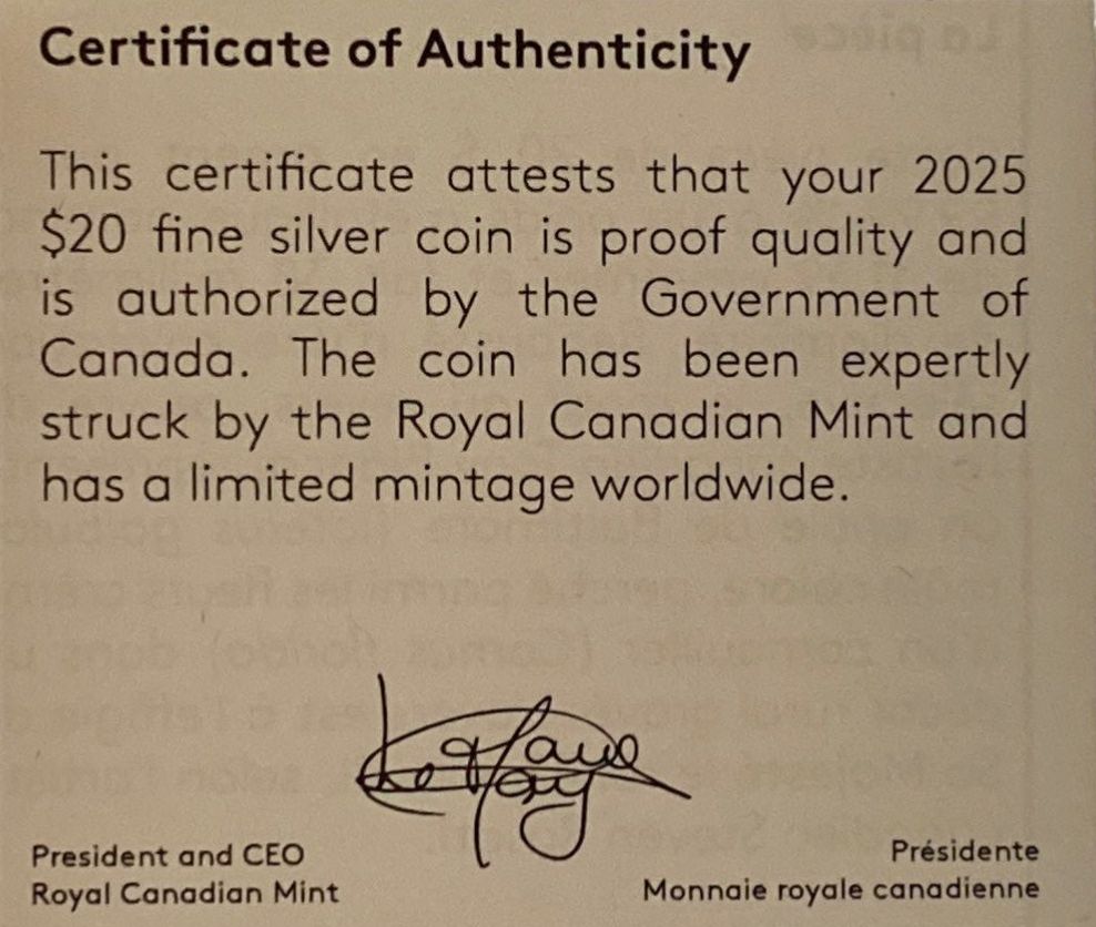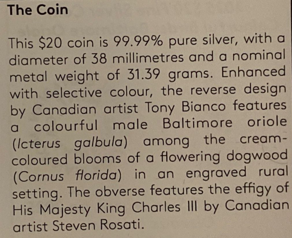 Lot 105 2025 $20 Baltimore Oriole Fine Silver Coin 31.39 Grams