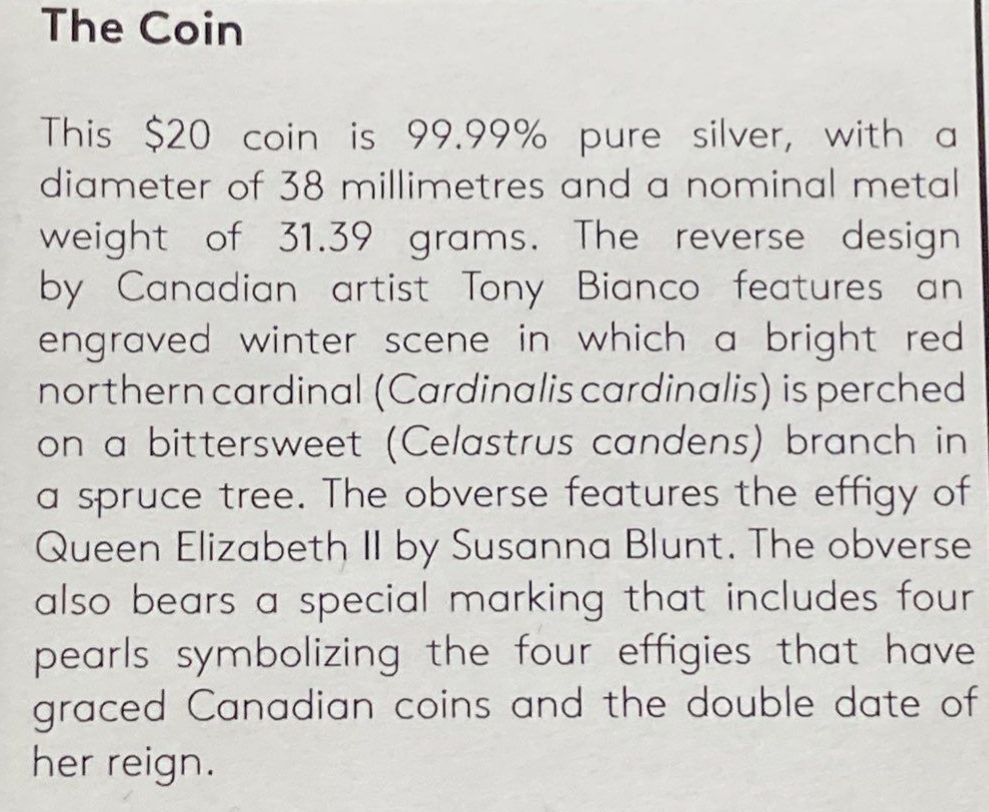 Lot 112 2023 $20 Northern Cardinal Fine Silver Coin 31.39 Grams