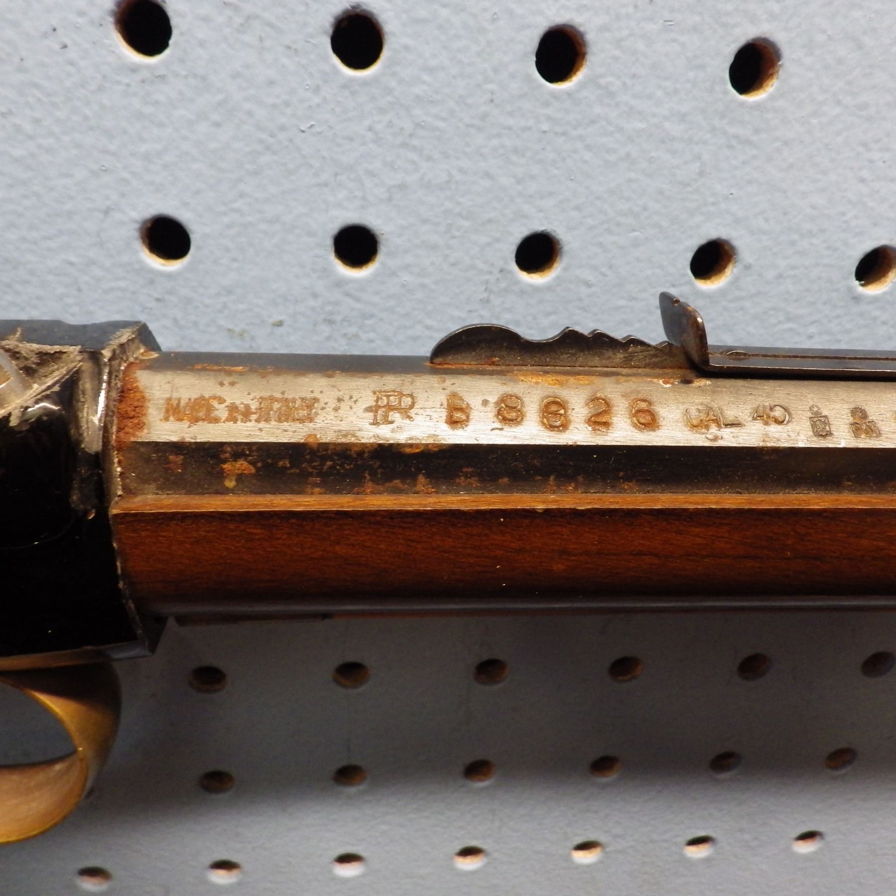 Made in Italy , .40 caliber black powder cap and ball Muzzleloader , Brass hardware , Rust present, SERIAL # PRB8 826