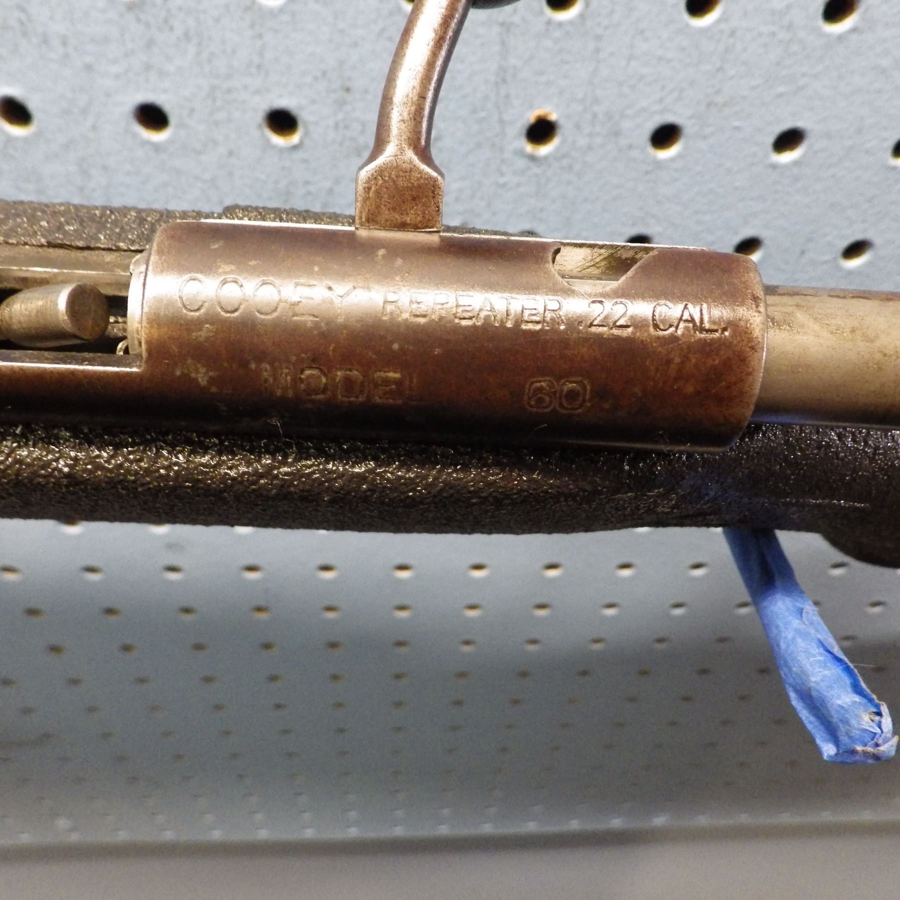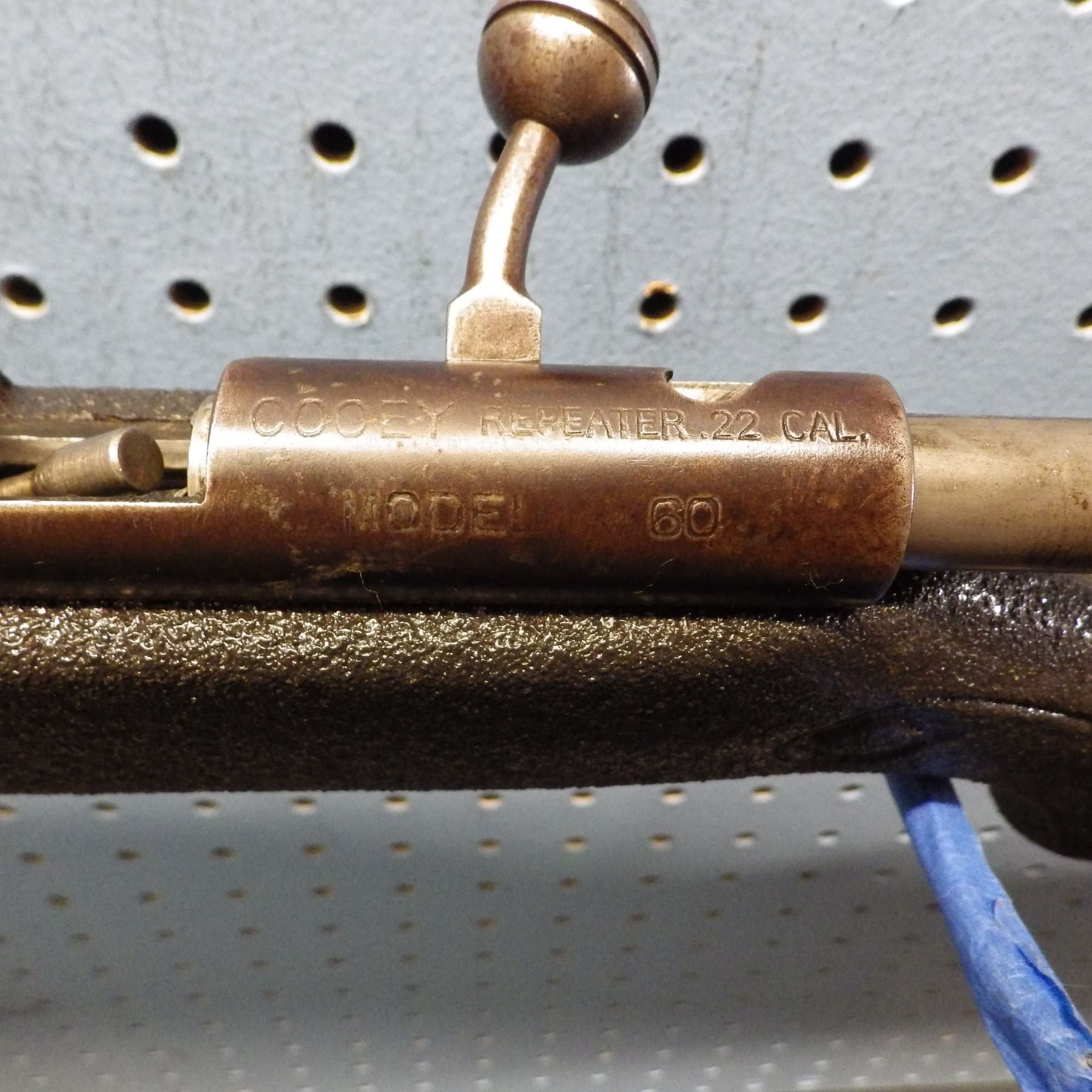 Lot 213 Cooey, repeater, model 60 , bolt action , 22 caliber, Woodstock has painted / overcoated , some Rust