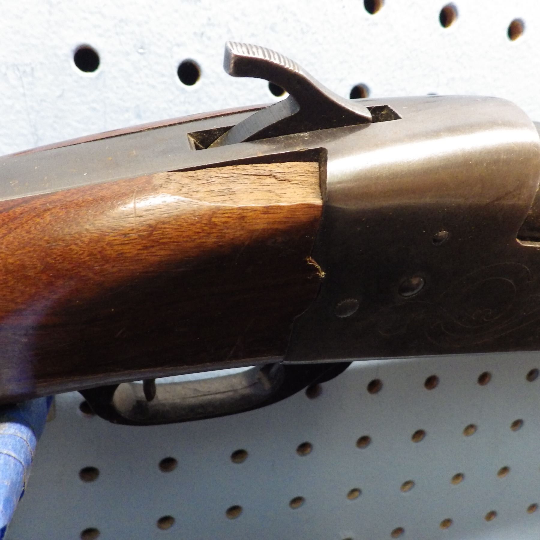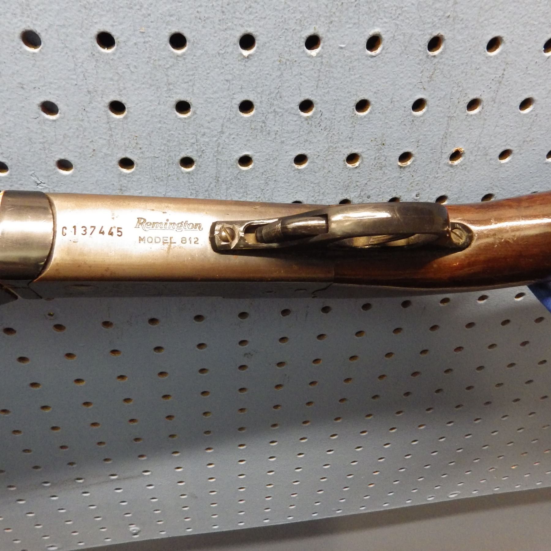 Lot 214 Remington, model 812, Single shot, Exposed hammer , 12 Gauge 2 3/4" , full choke , small chip out of