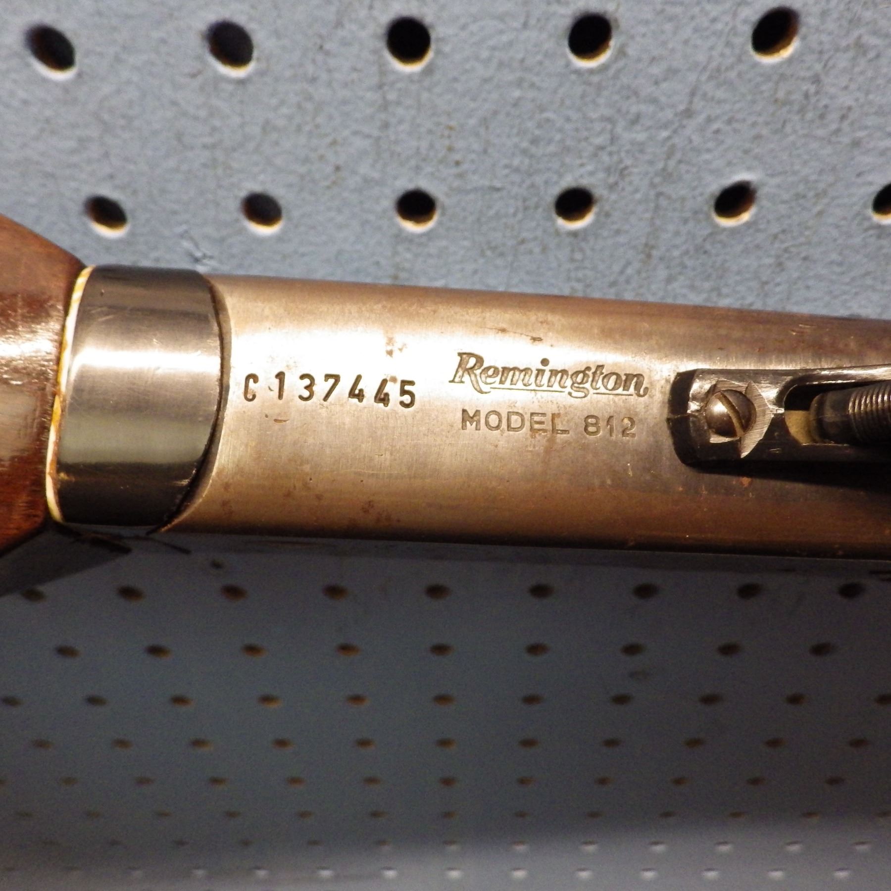 Remington, model 812, Single shot, Exposed hammer , 12 Gauge 2 3/4" , full choke , small chip out of stock , Some rust , SERIAL # C137445