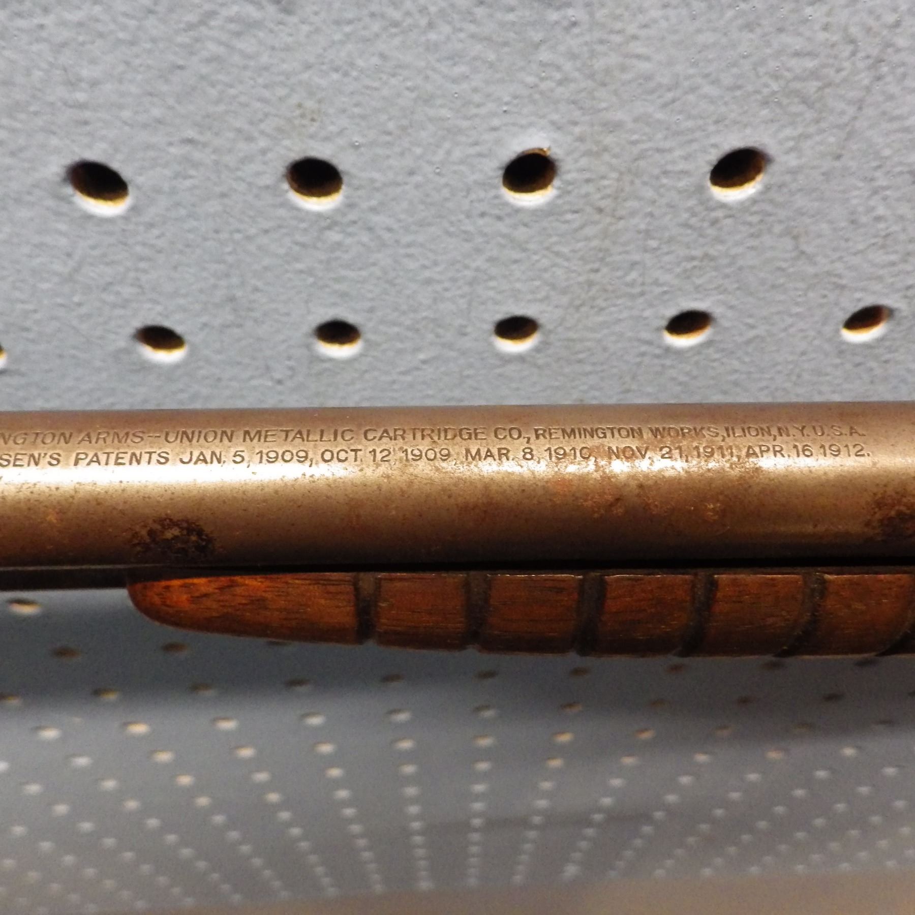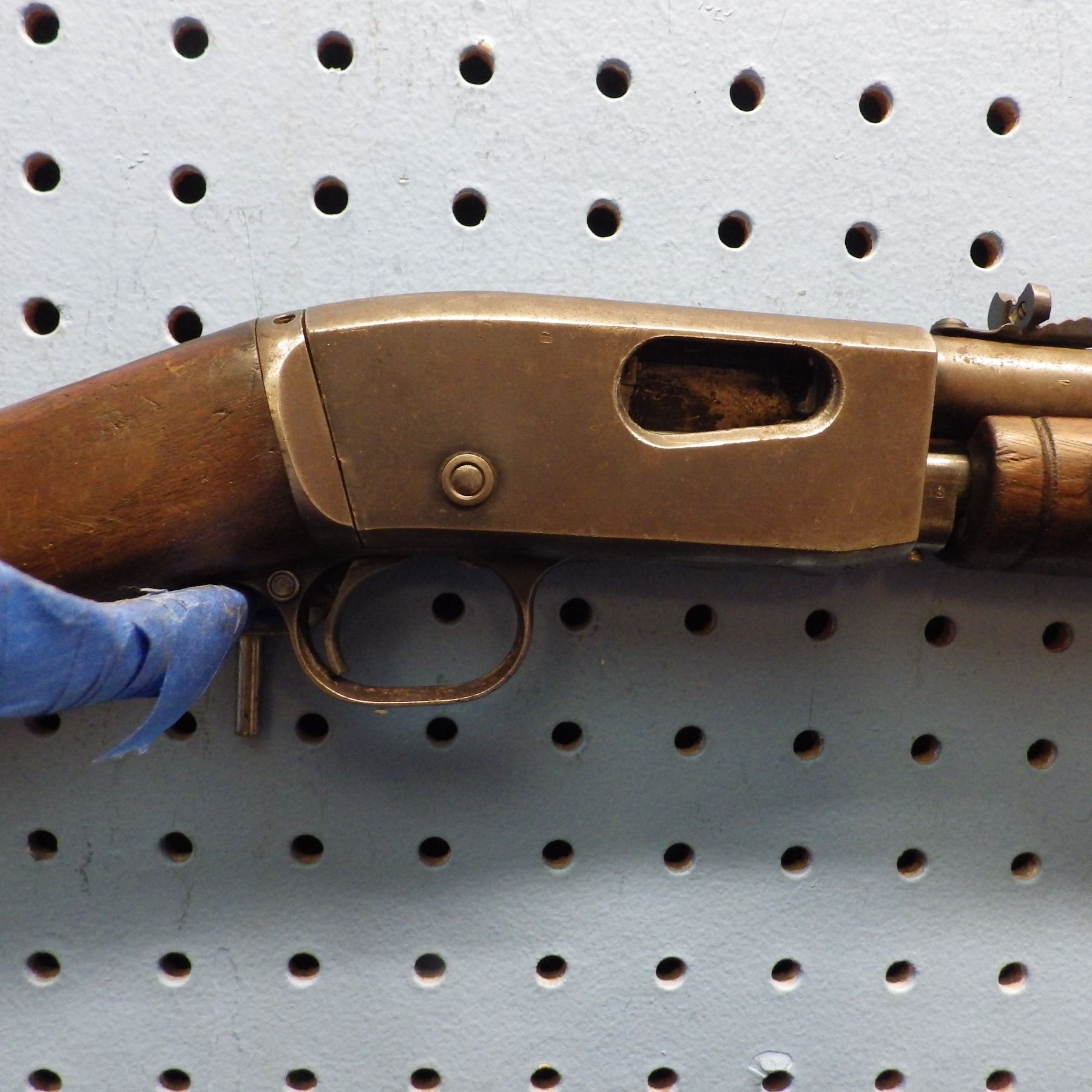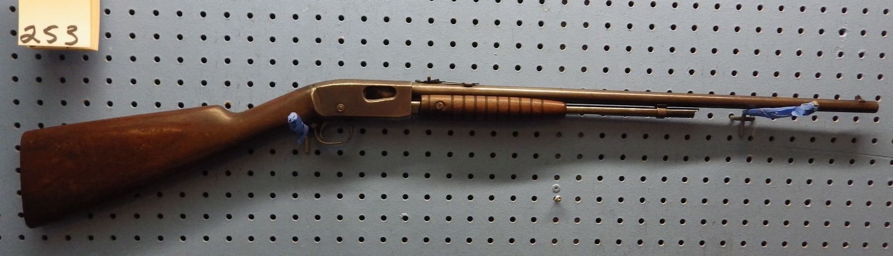 Lot 253 Remington Model 12 , pump action , 22 S-L-LR , 22 inch barrel , tube magazine damaged and missing pa