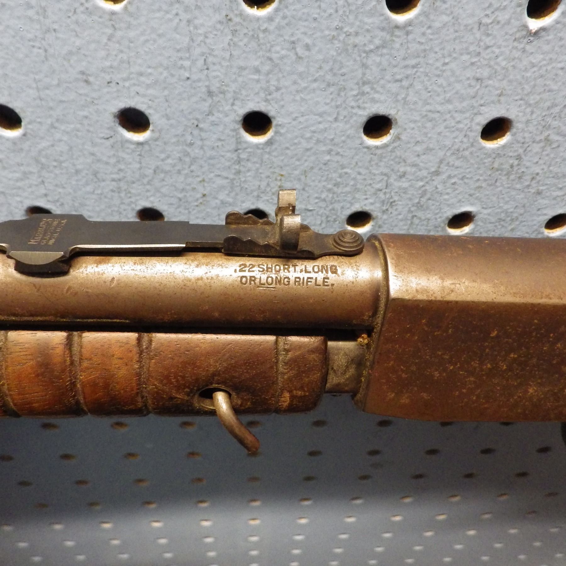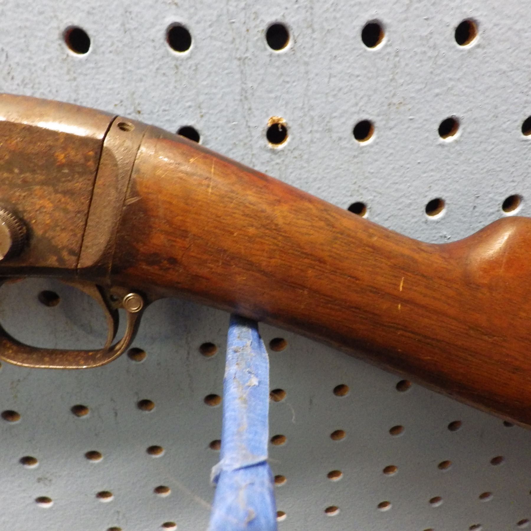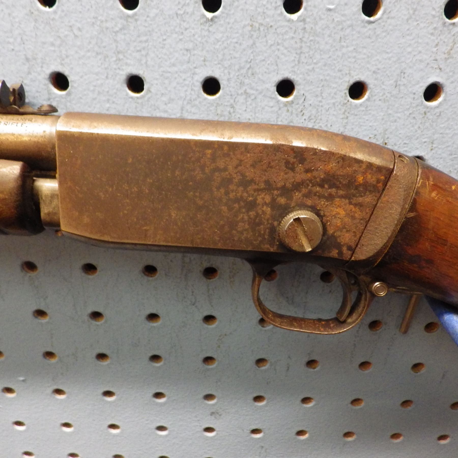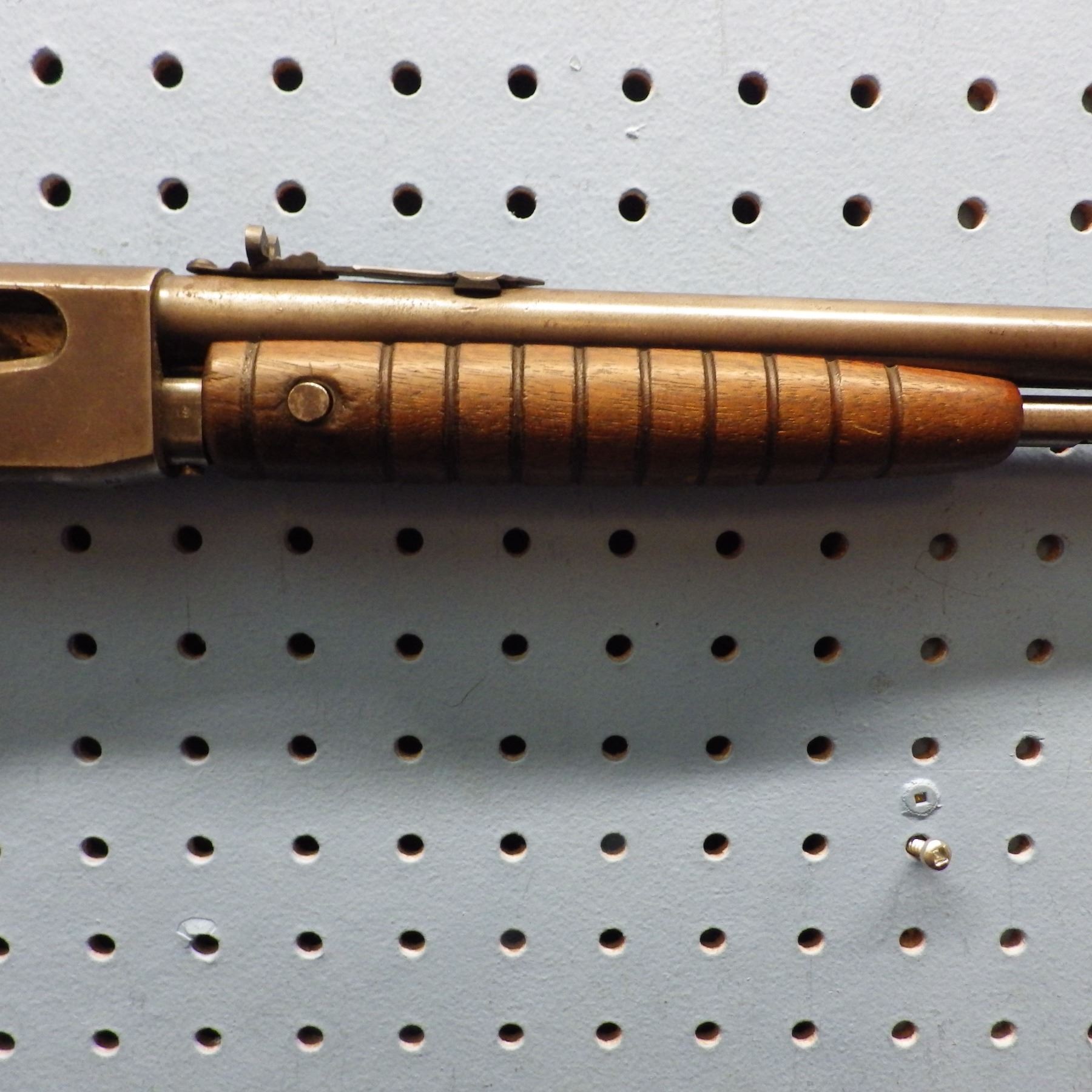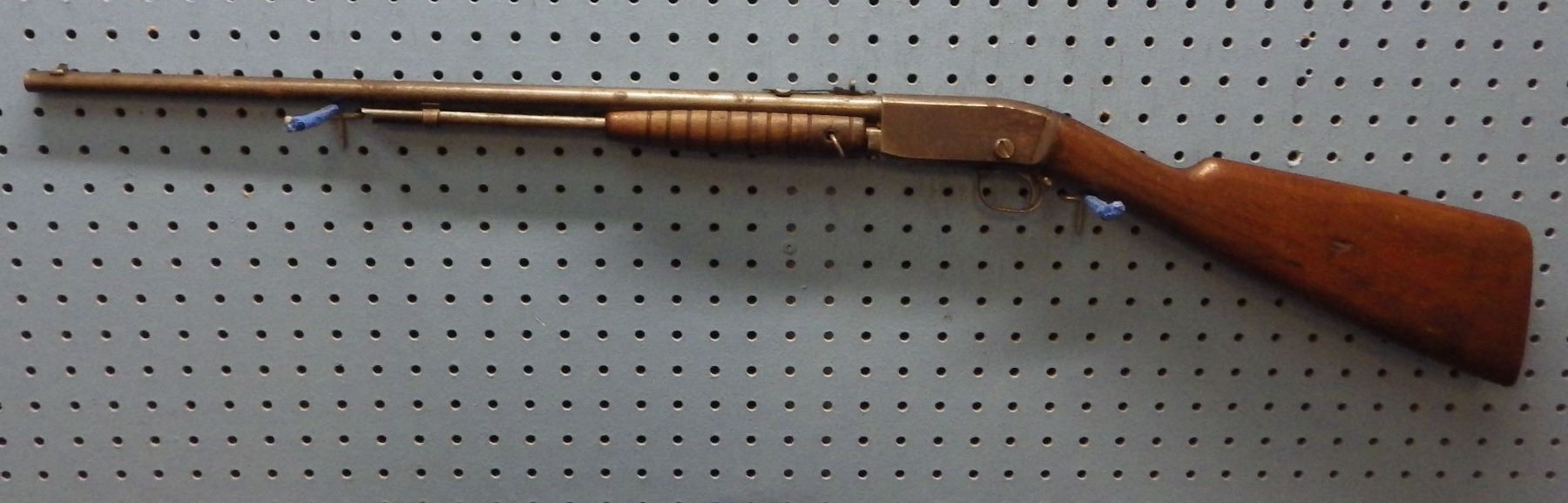 Remington Model 12 , pump action , 22 S-L-LR , 22 inch barrel , tube magazine damaged and missing parts , Marble's buckhorn rear sight , SERIAL # 266913