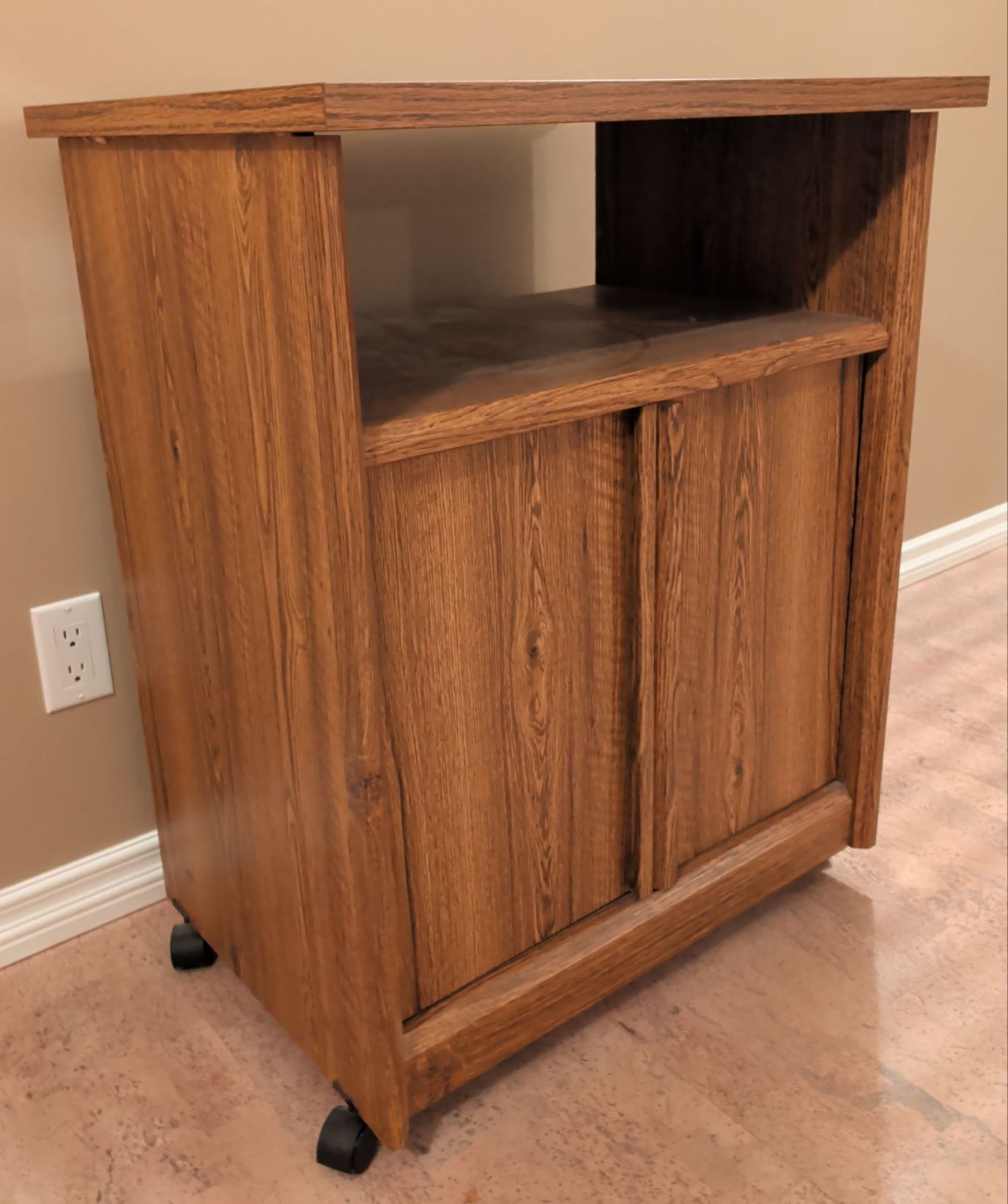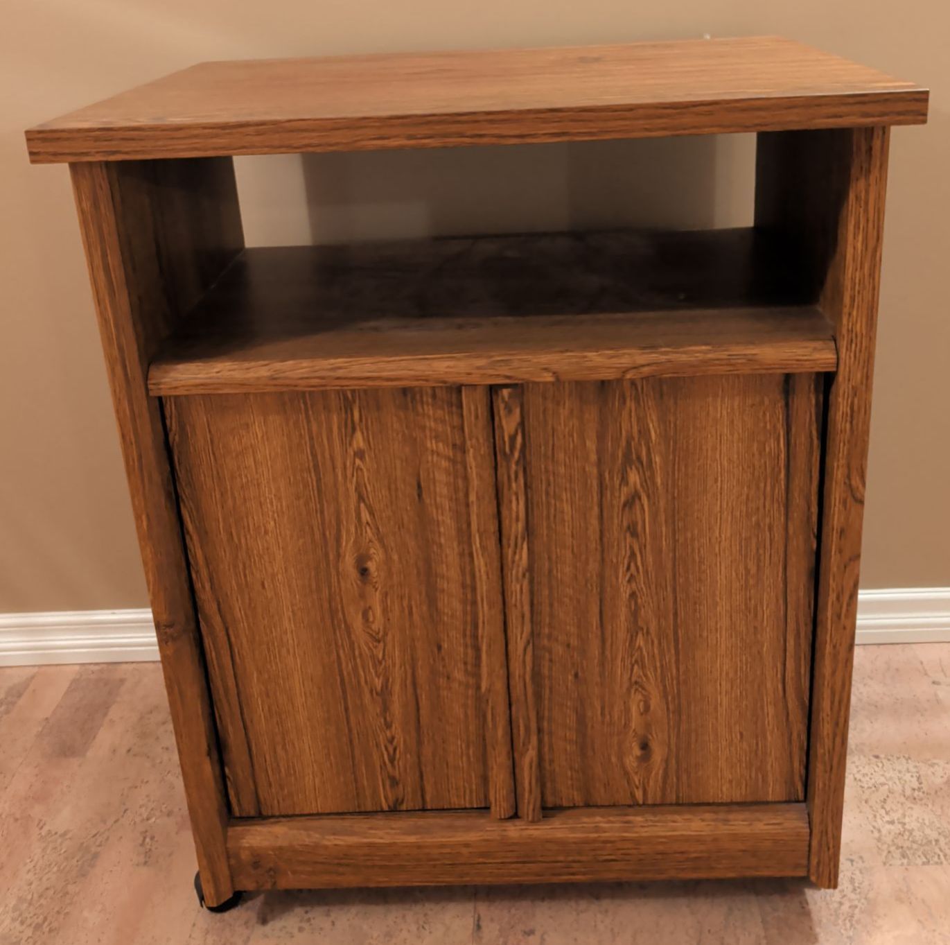 Lot 114 Vintage Microauve Cart w/ Double Doored Cabinet on Casters 24x16x26