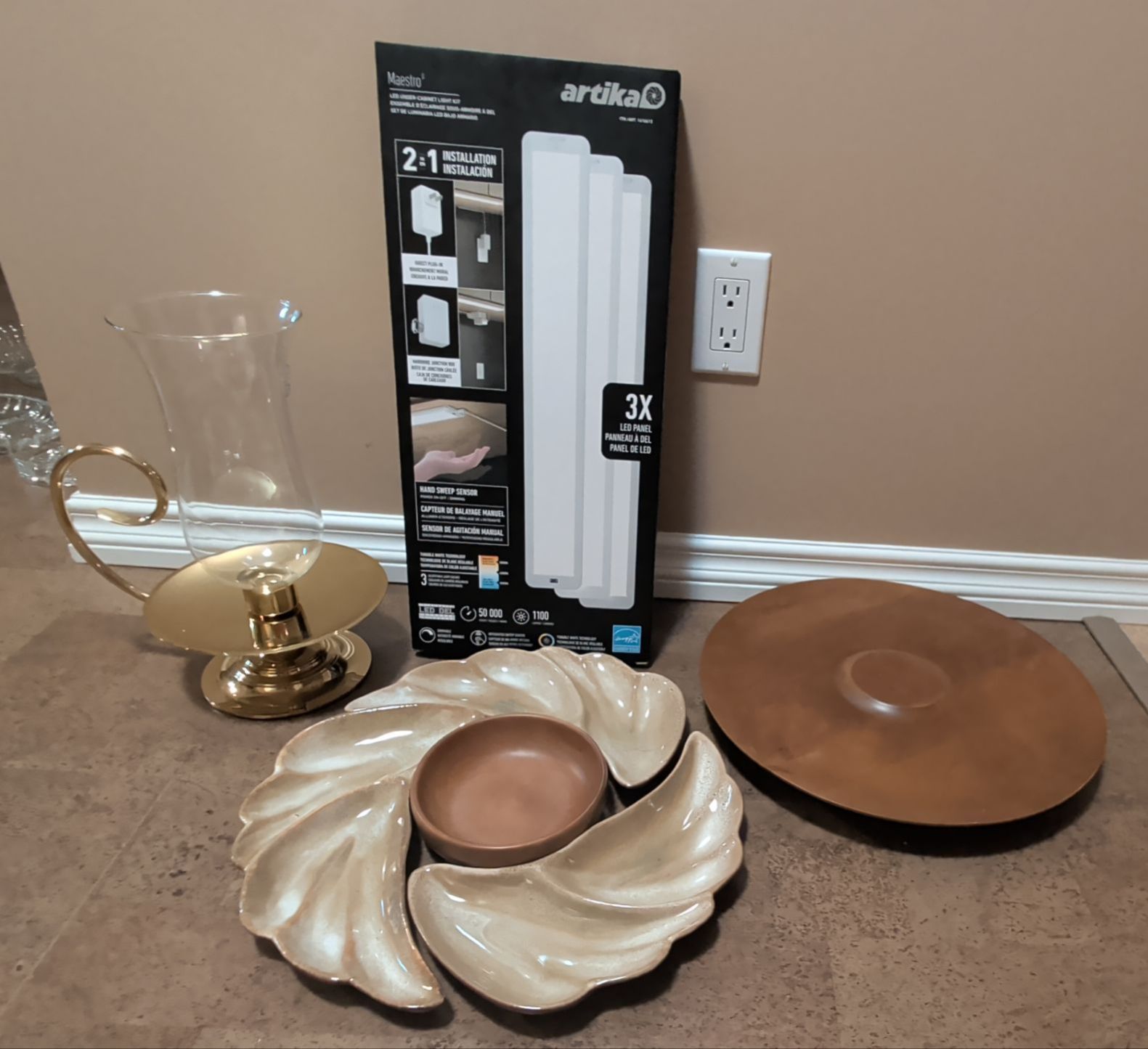 Lot 128 Holiday/Special Occasion Essentials - Teak Lazy Suzan 4 Piece Party Platter New Under Cabinet Lights