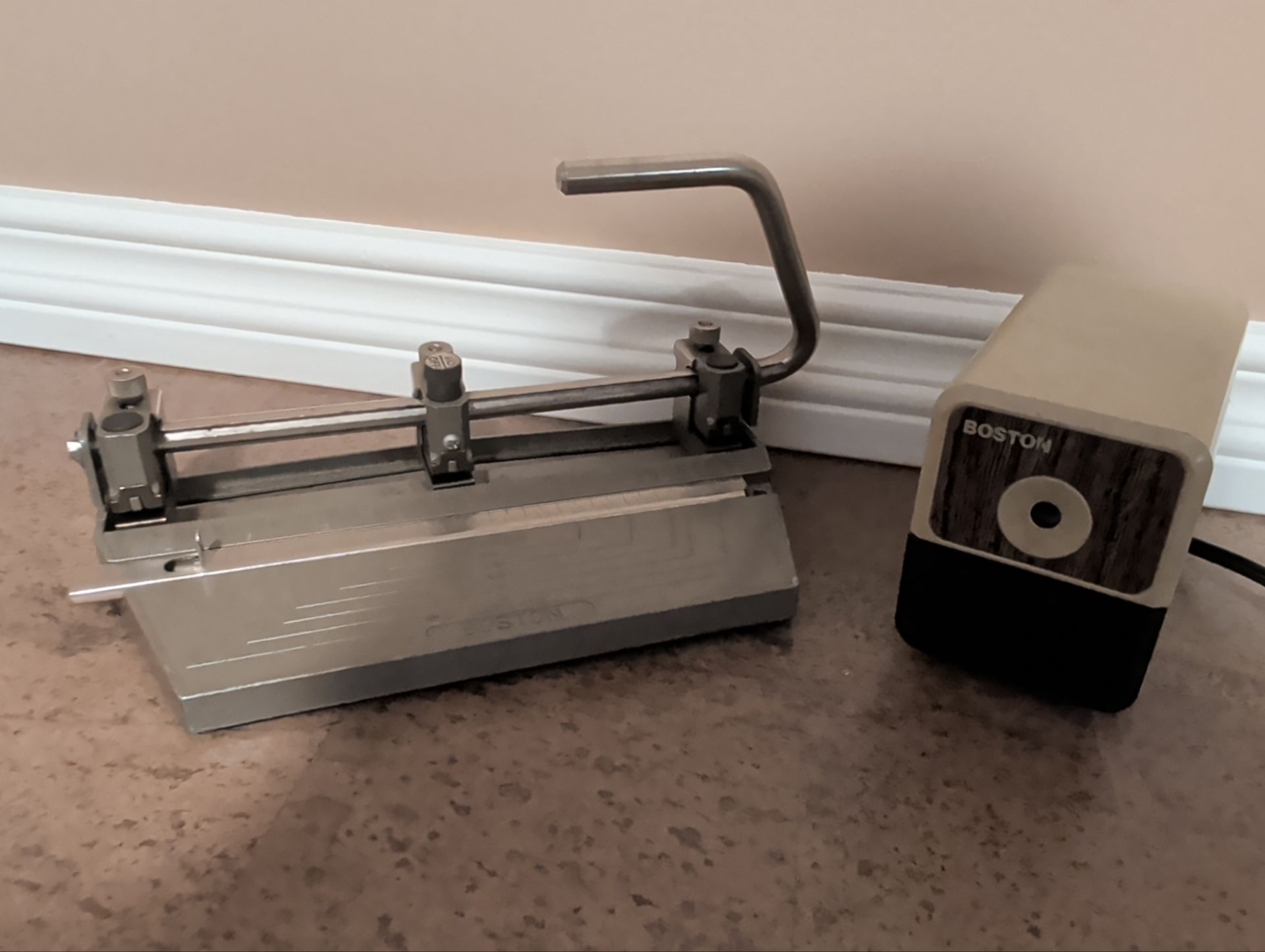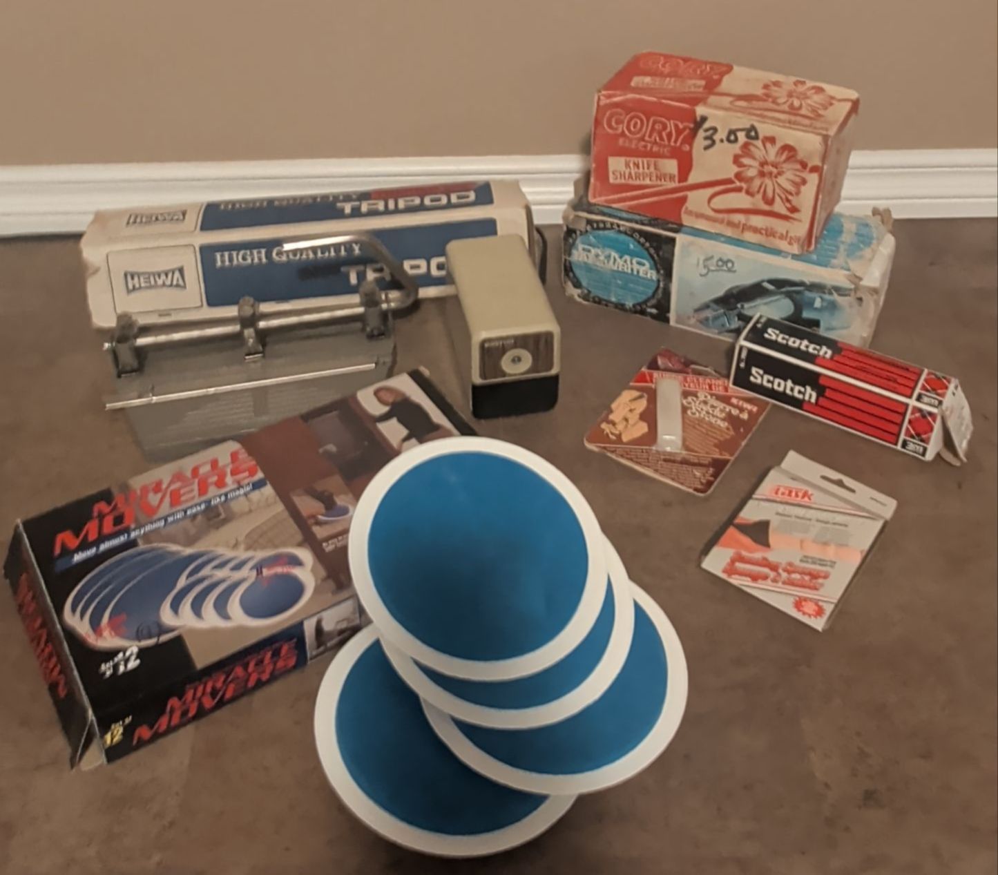 Lot 146 Vintage Gadget Collection - DYMO w/ Refills Electric Pencil Sharpener Tripod Knife Sharpener