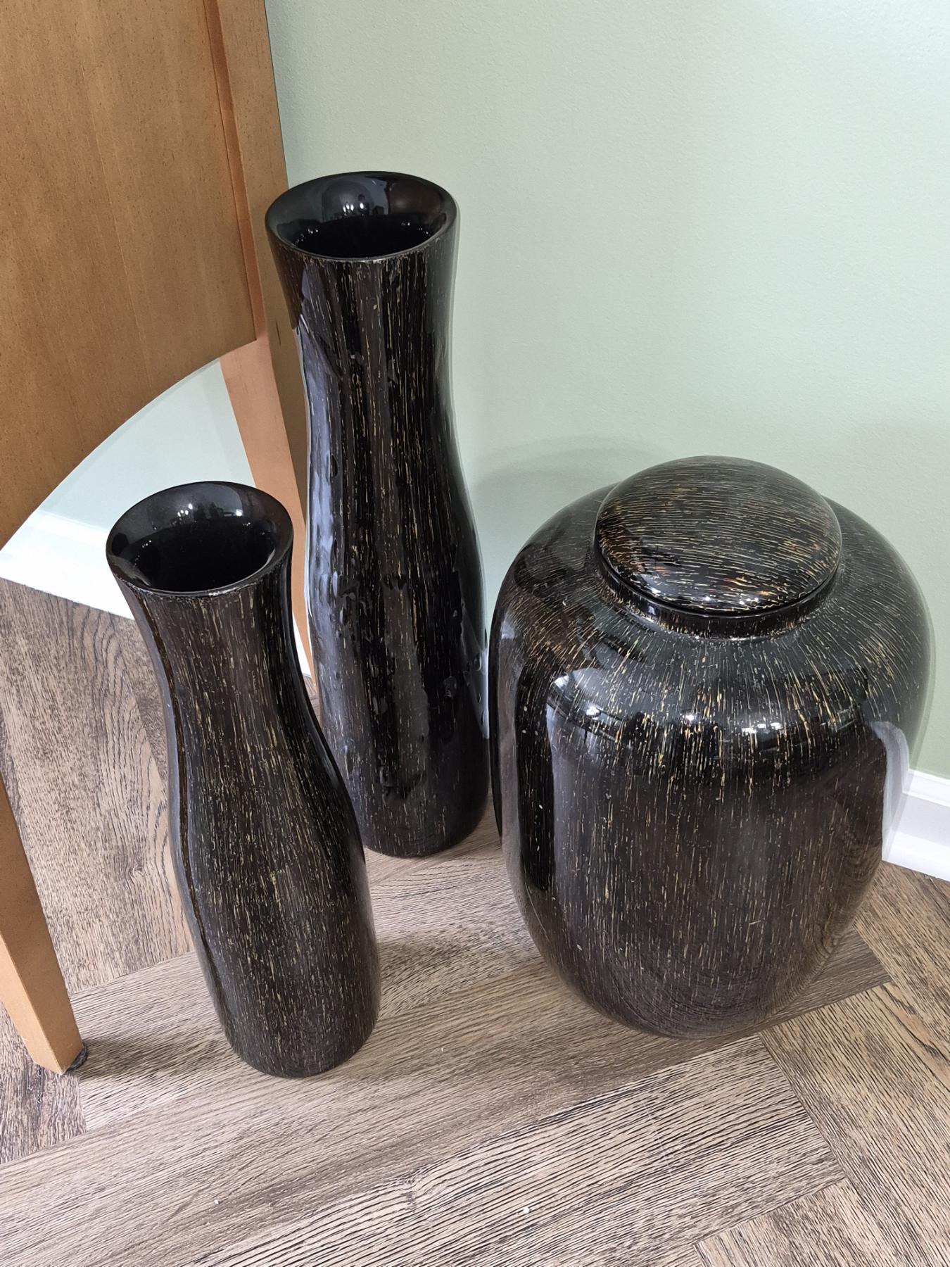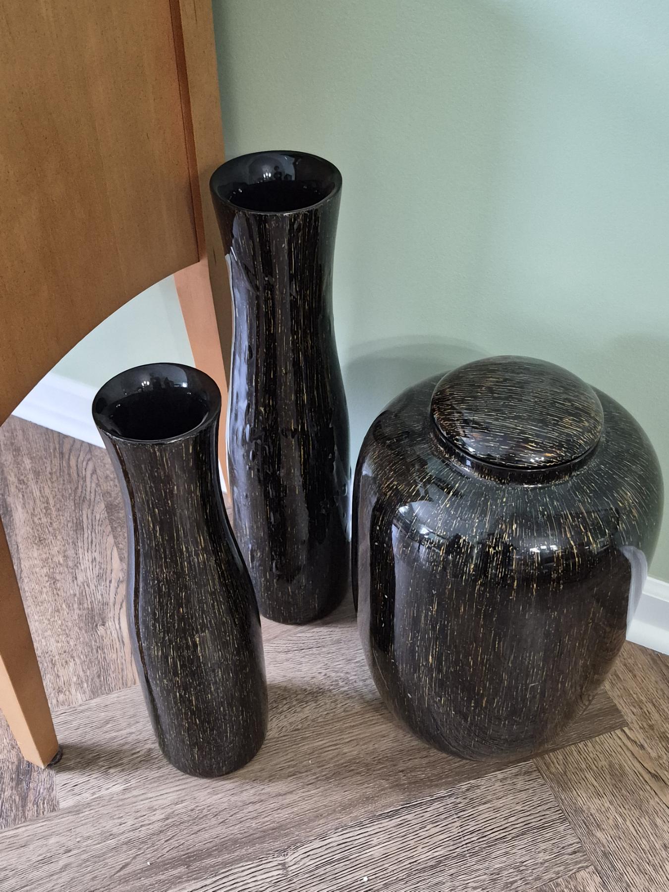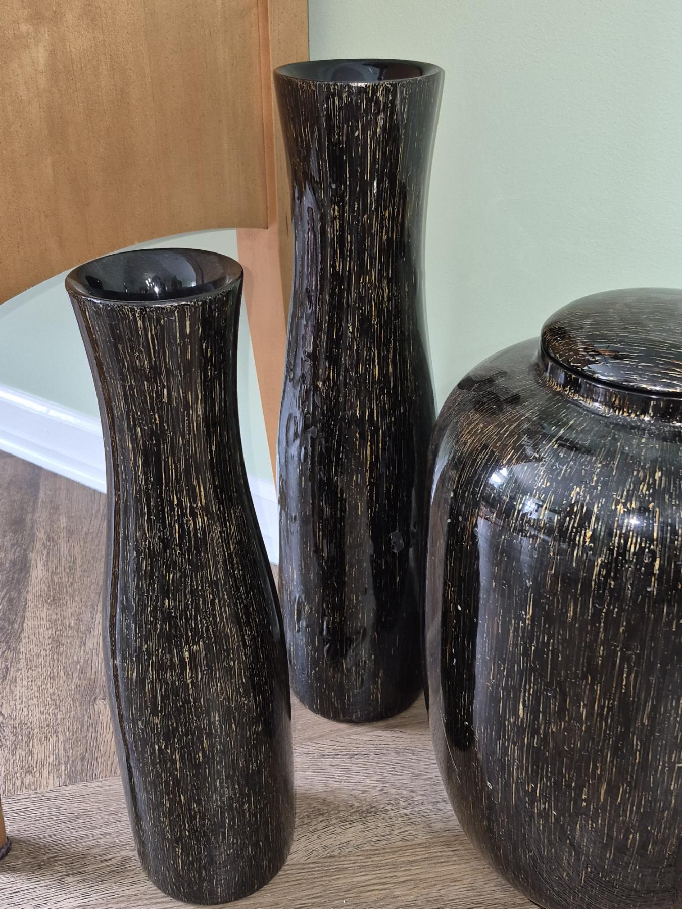PICKUP IN NORTHFIELD - 3 Pc Floor Vases As Shown Measuring 18" /22" & 10" x 17" - See Pics - (All Items noting "Pickup In Northfield" will be available the following Saturday after this auction ends. Other items in this auction will be available at our Louisville Office. Winners of Northfield items will be notified with the address and times, after the auction closes.)