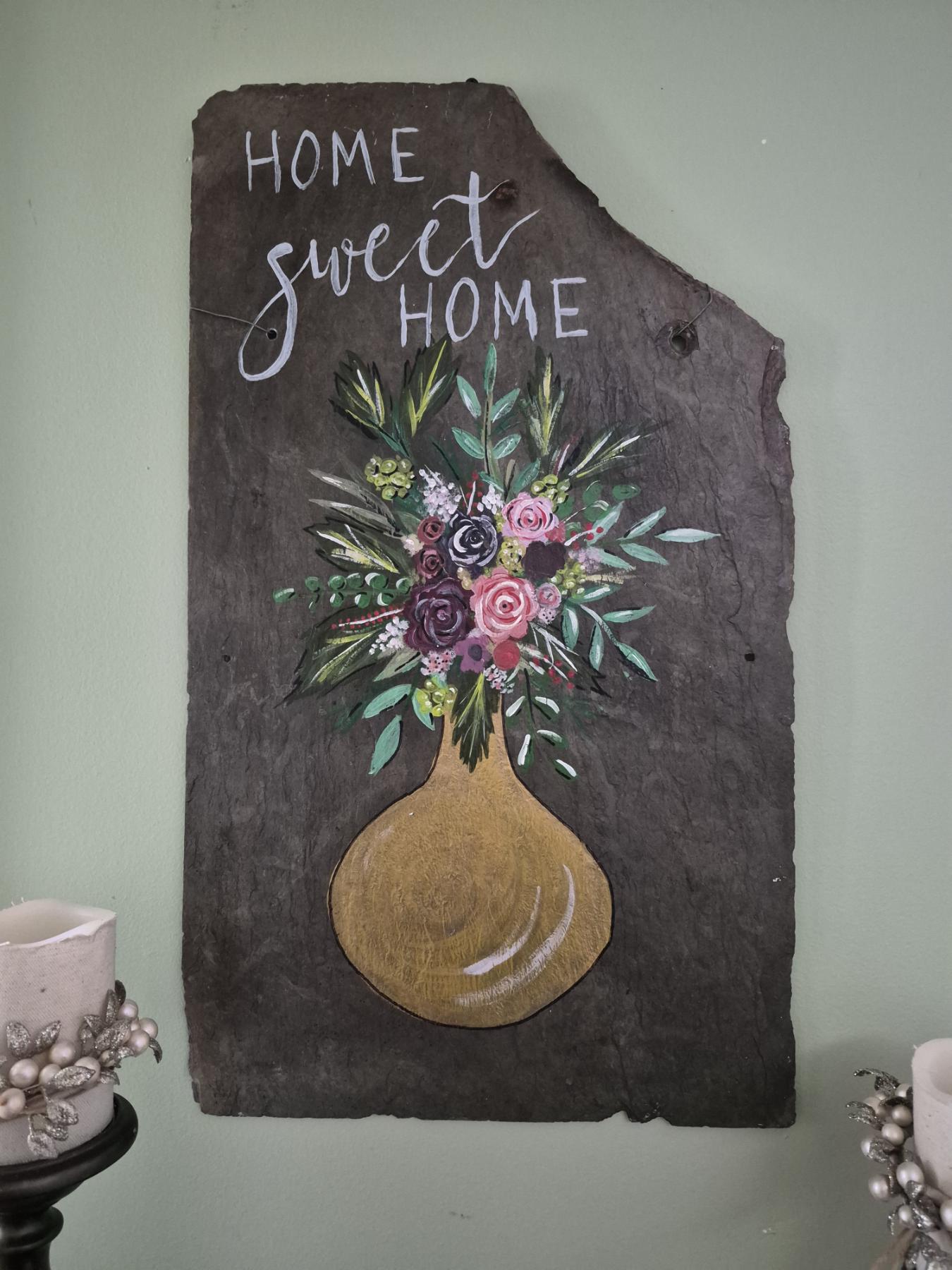 Lot 44EN PICKUP IN NORTHFIELD - Hand Painted Slate Slab 24" x 14" With Wall hanger As Shown - See Pics