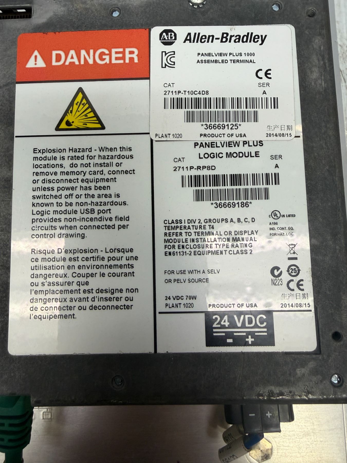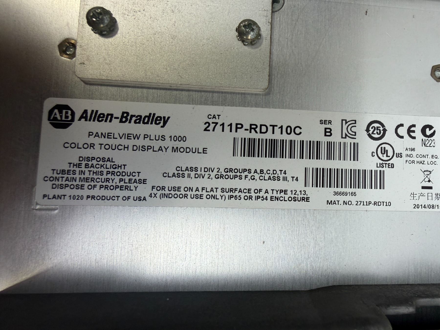 Allen-Bradley #2711P-RDT10C / #2711P-RP8D/ #2711P-T10C4D8 PanelView Plus 1000