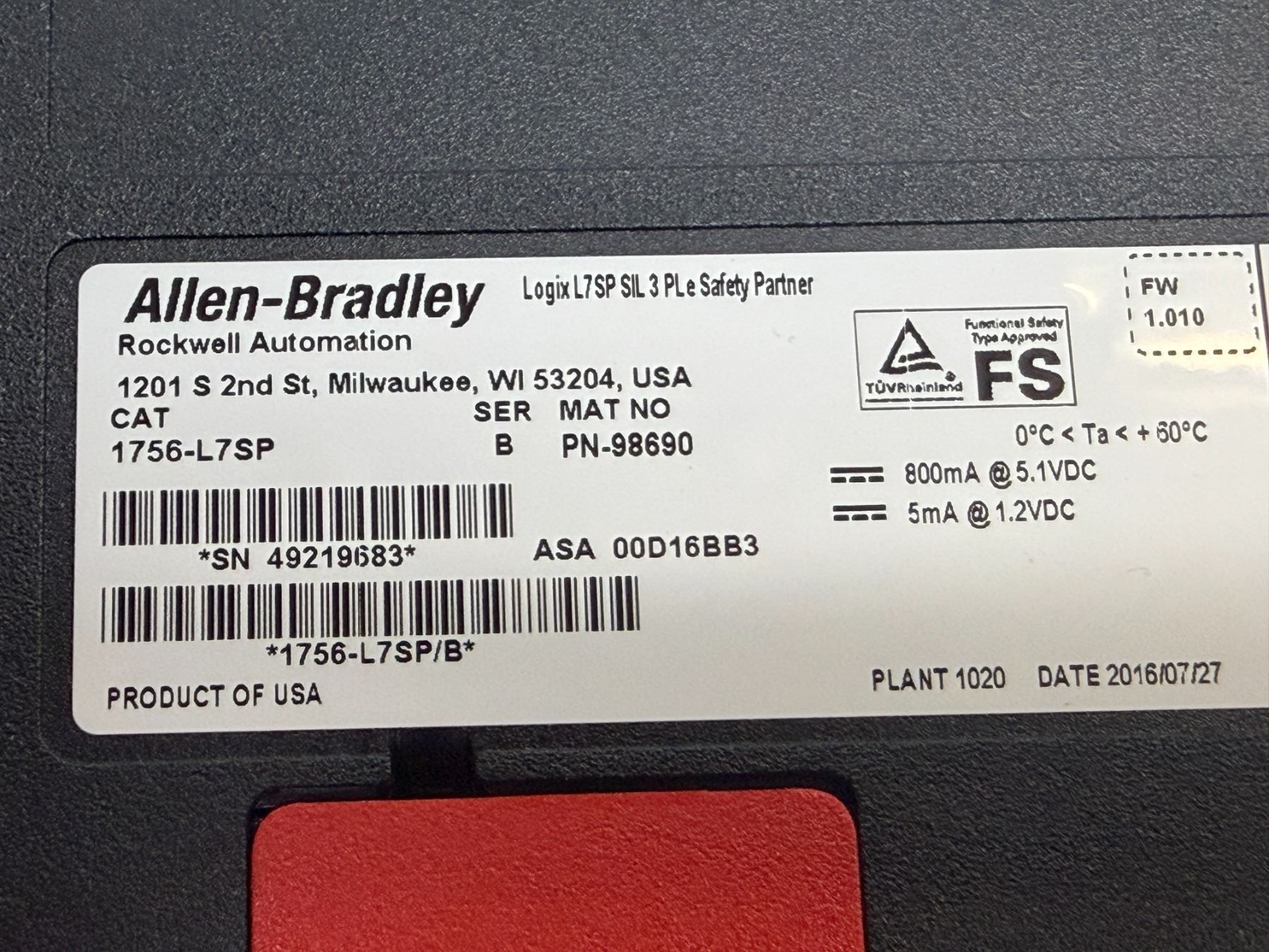 Lot 443 Allen-Bradley #1756-L7SP Logix L7SP SIL 3 PLe Safety Partner