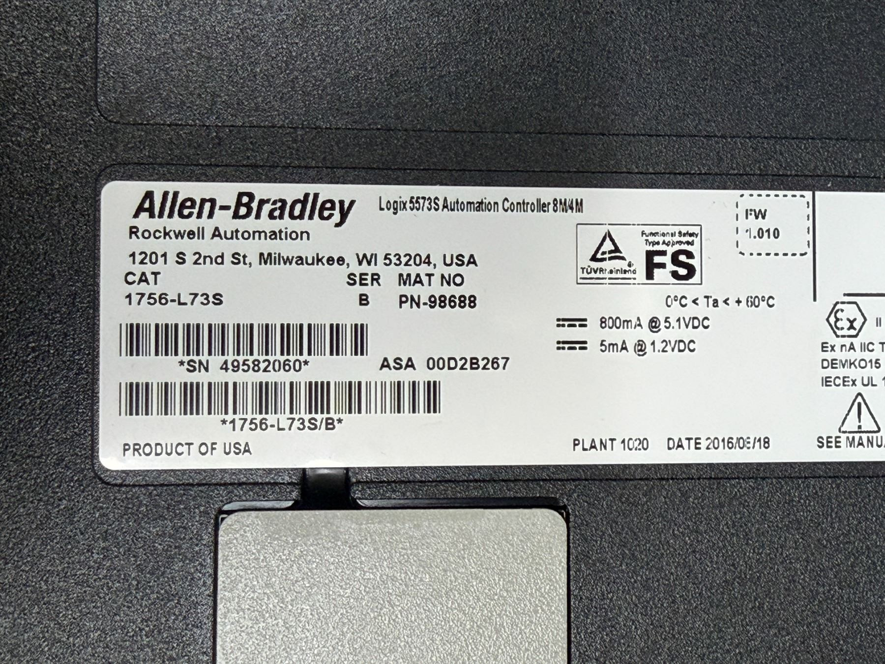 Allen-Bradley #1756-L73S Logix 5573S Automation Controller 8M/4M