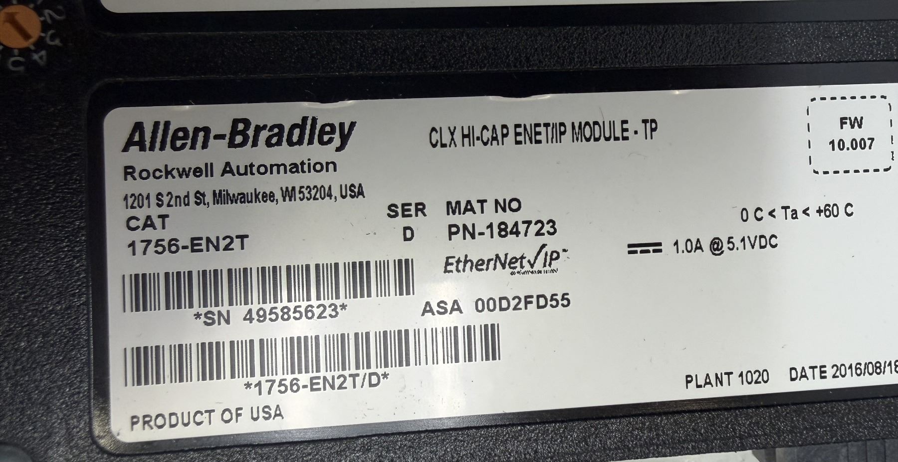 Allen-Bradley #1756-EN2T / #PN-184723 CLX HI-CAP ENET/IP Module-TP