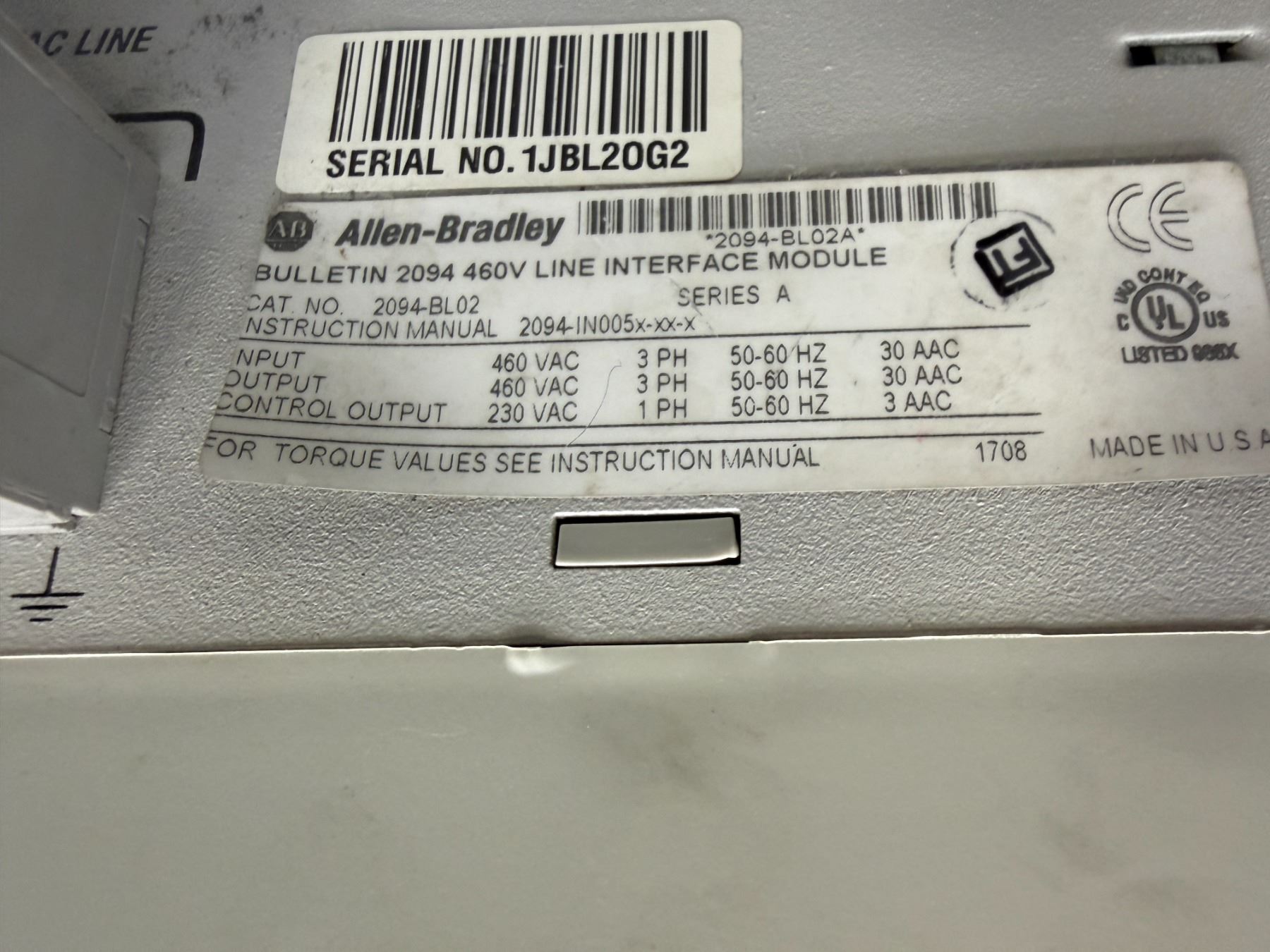 Allen-Bradley #2094-BL02 Bulletin 2094 460 Line Interface Module