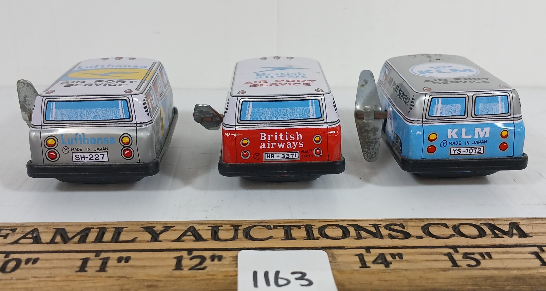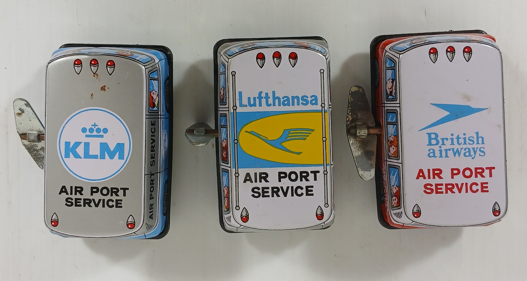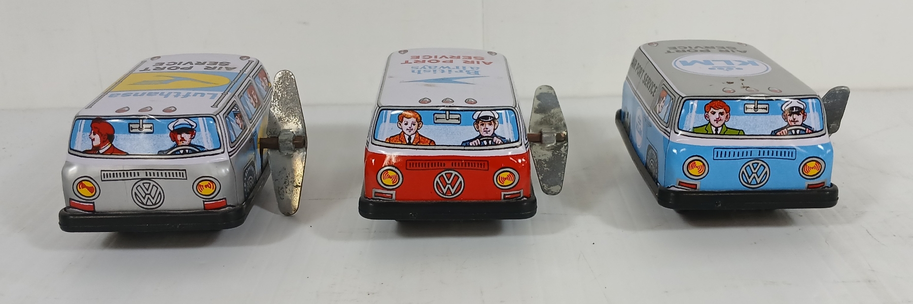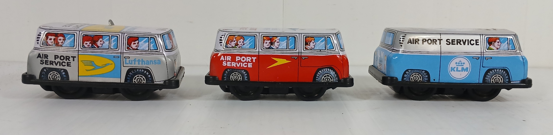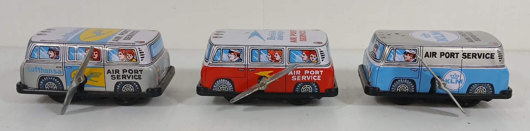 Lot 1163 LOT OF 3 - MODERN TOYS TIN LITHO WINDUP AIRPORT VANS W/ KEYS