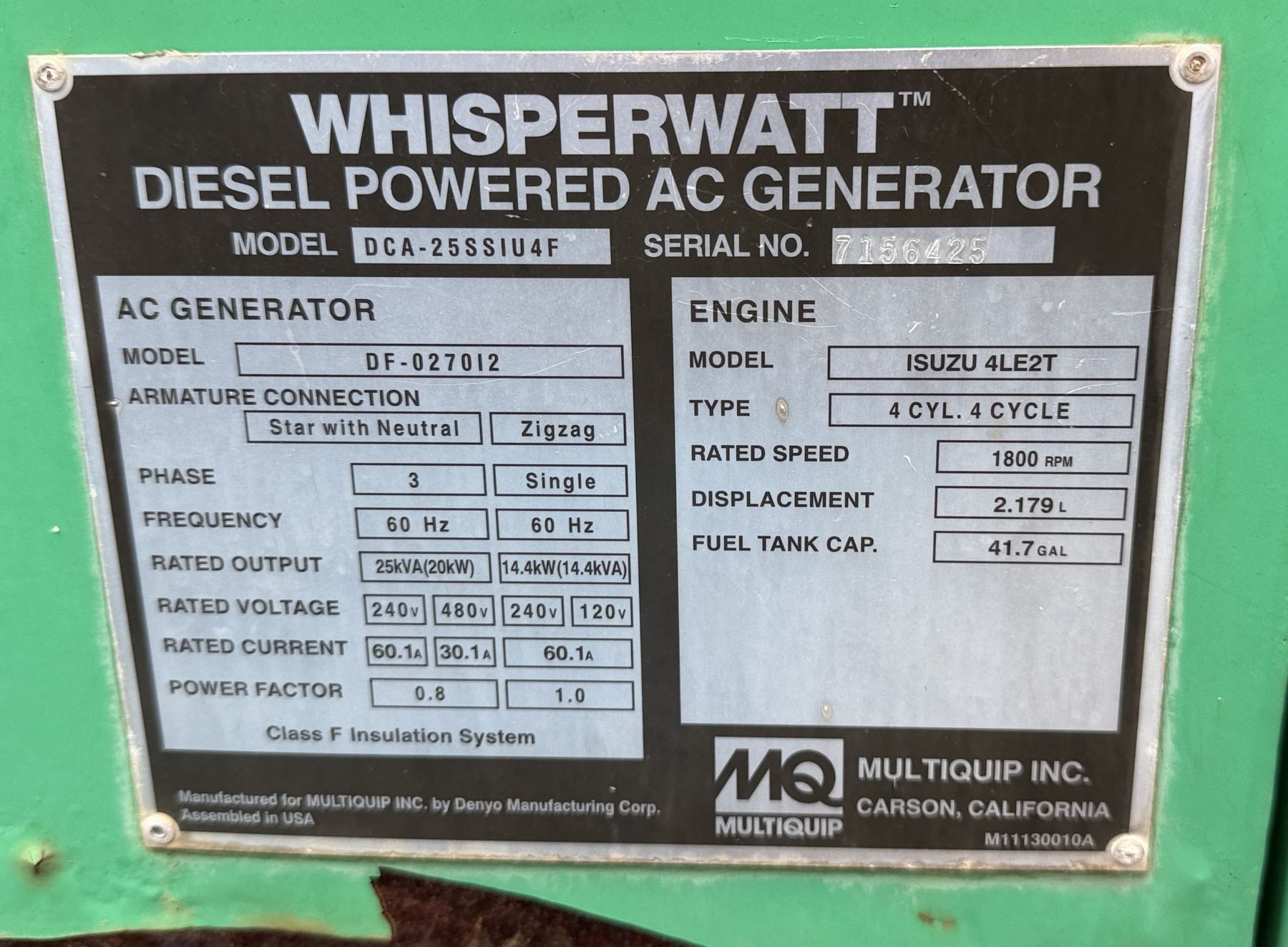 2018 MQ Power DCA25SSIU4FSG 20 kW Mobile Generator (Starts & Runs - See Video)