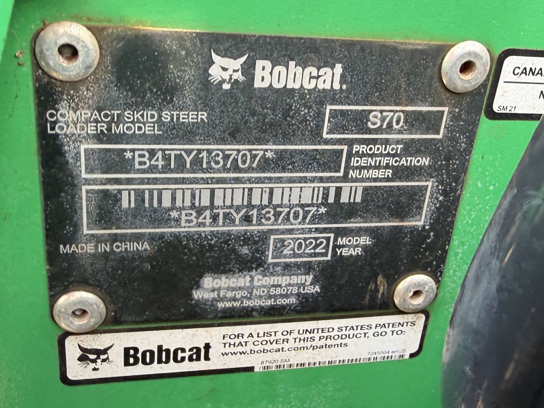 2022 Bobcat S70 Skid Steer Loader (Starts & Runs - See Video)