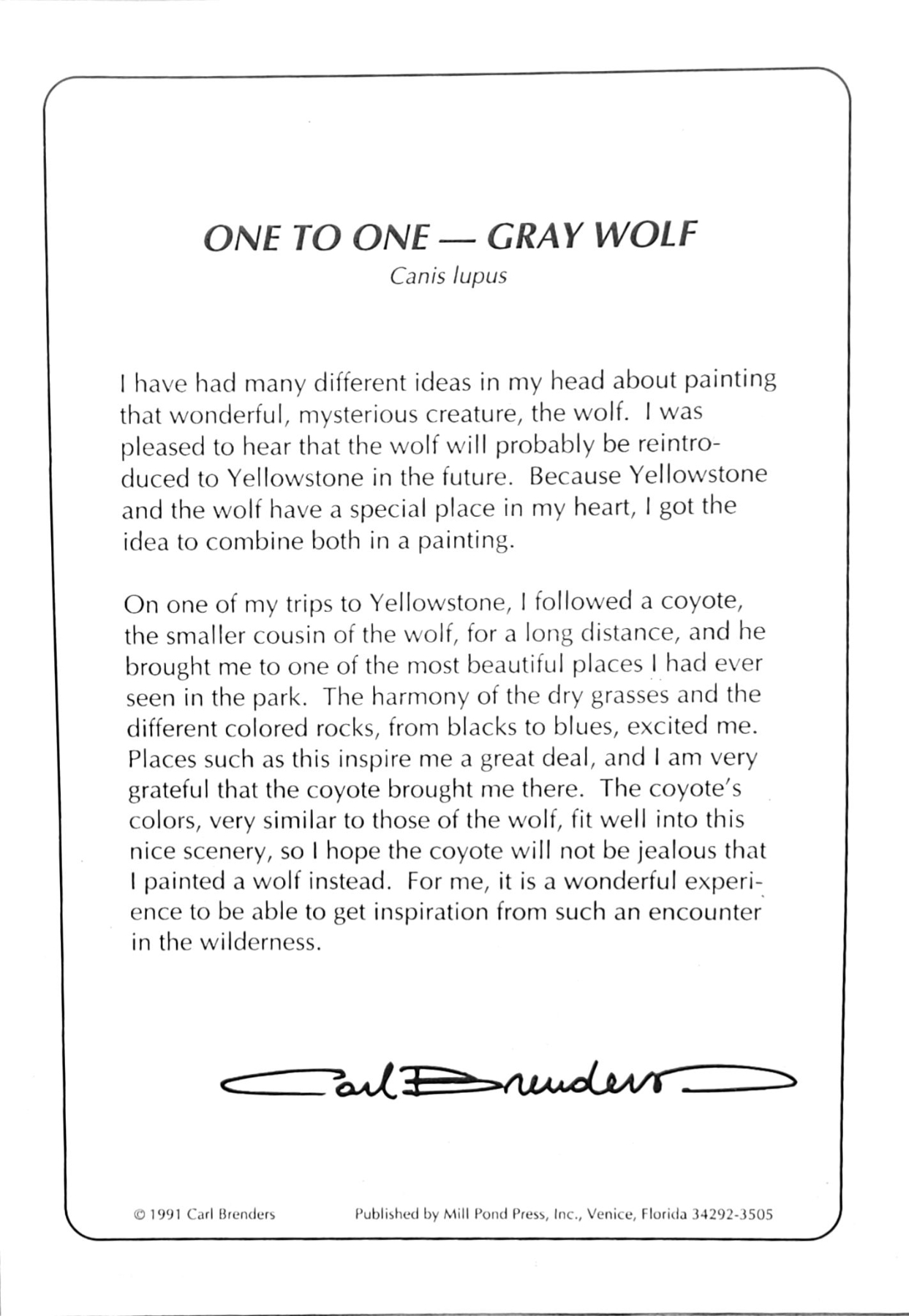 Lot 2 'One to One - Gray Wolf' by Carl Brenders - 38W x 32H" (1990)