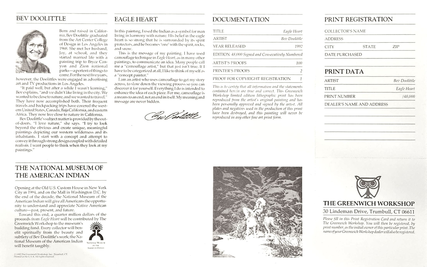 Original painting by Bev Doolittle, 48,000 copies printed. Contains authentic arrowhead in place of plaque underneath artwork.