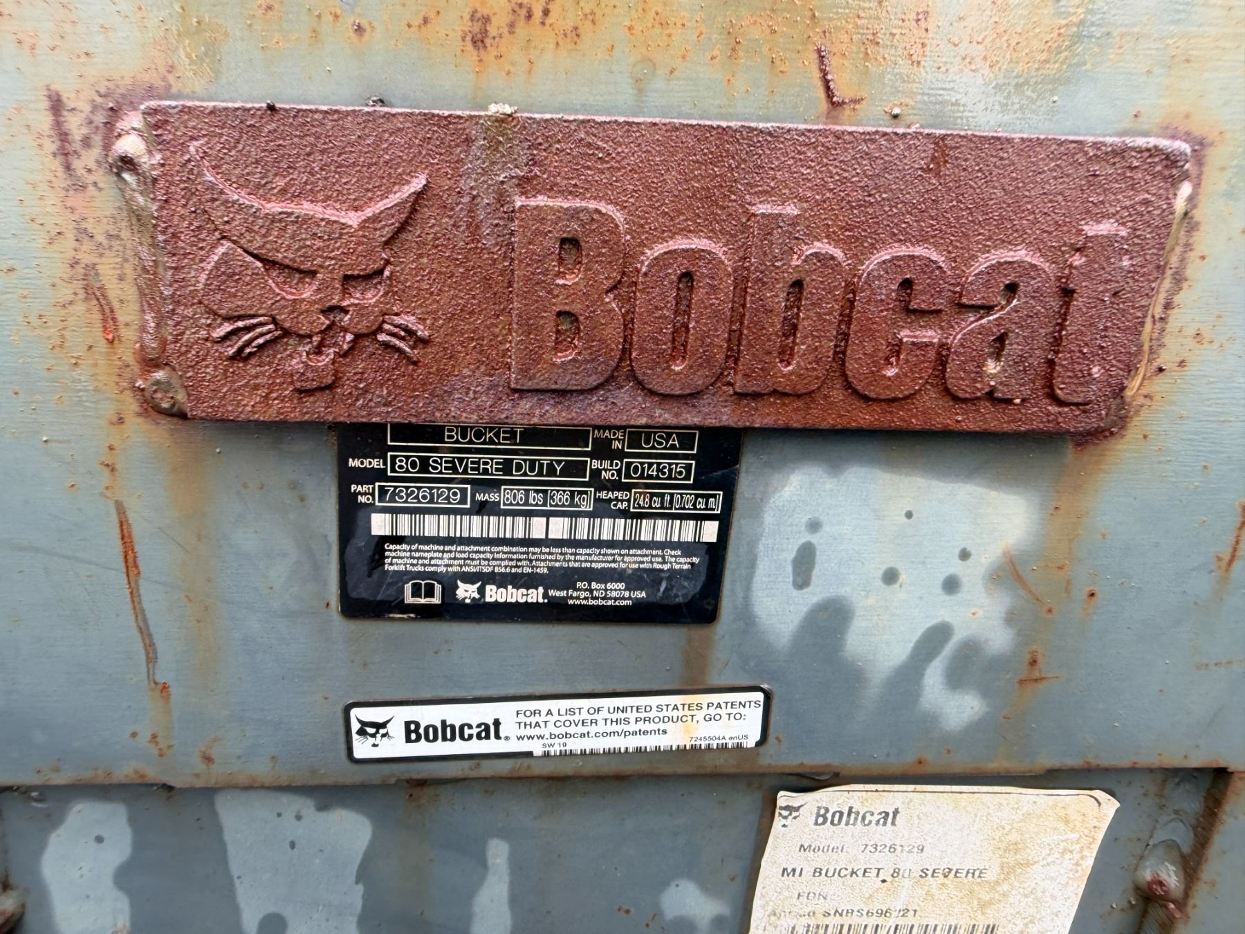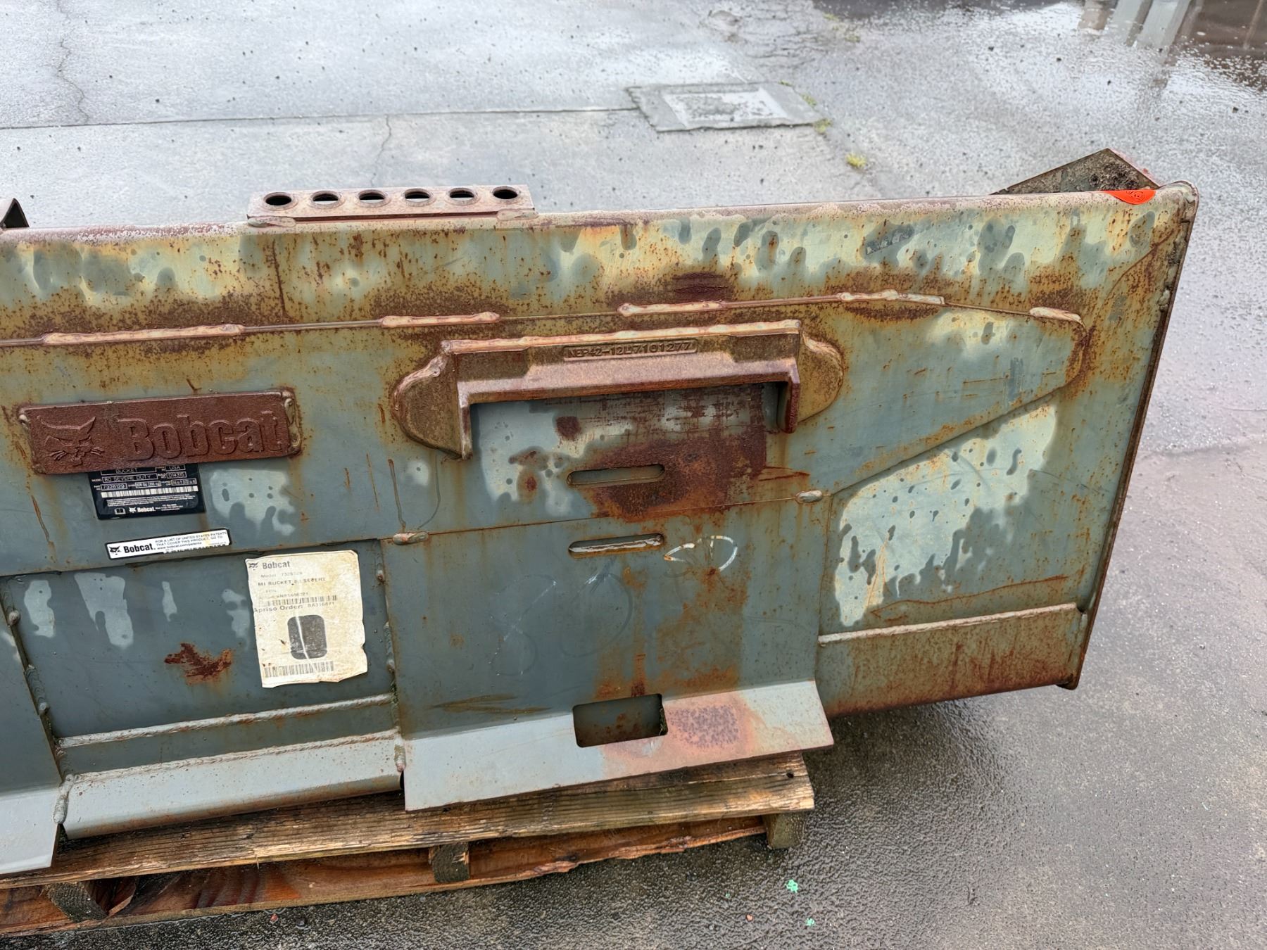 Bobcat 80 Severe Duty Bucket, Straight Edge 79" L. The item/part inside the bucket is not included and goes with the Bobcat skidsteer loader (lot 35).
