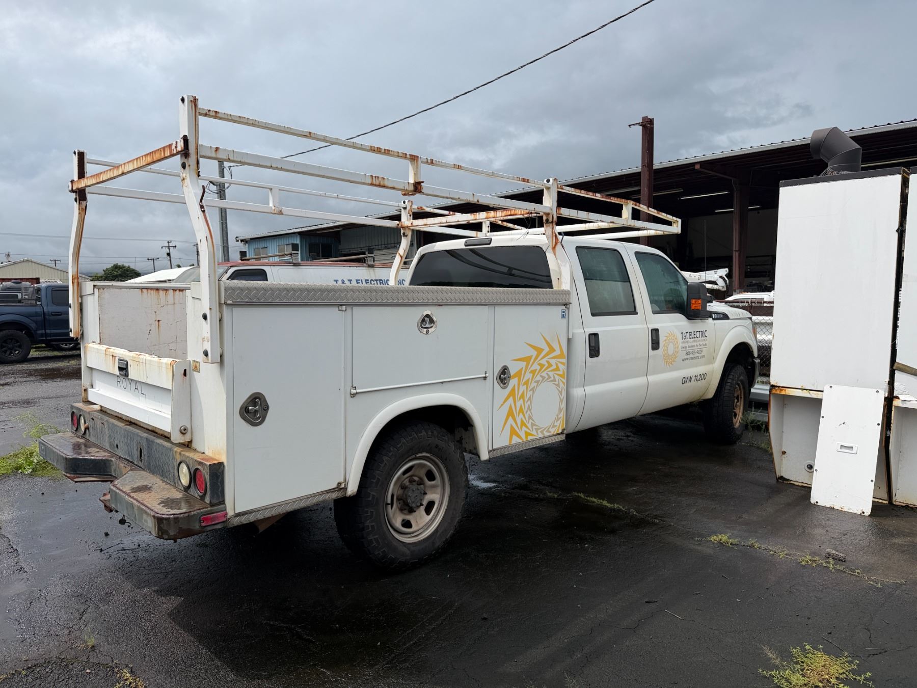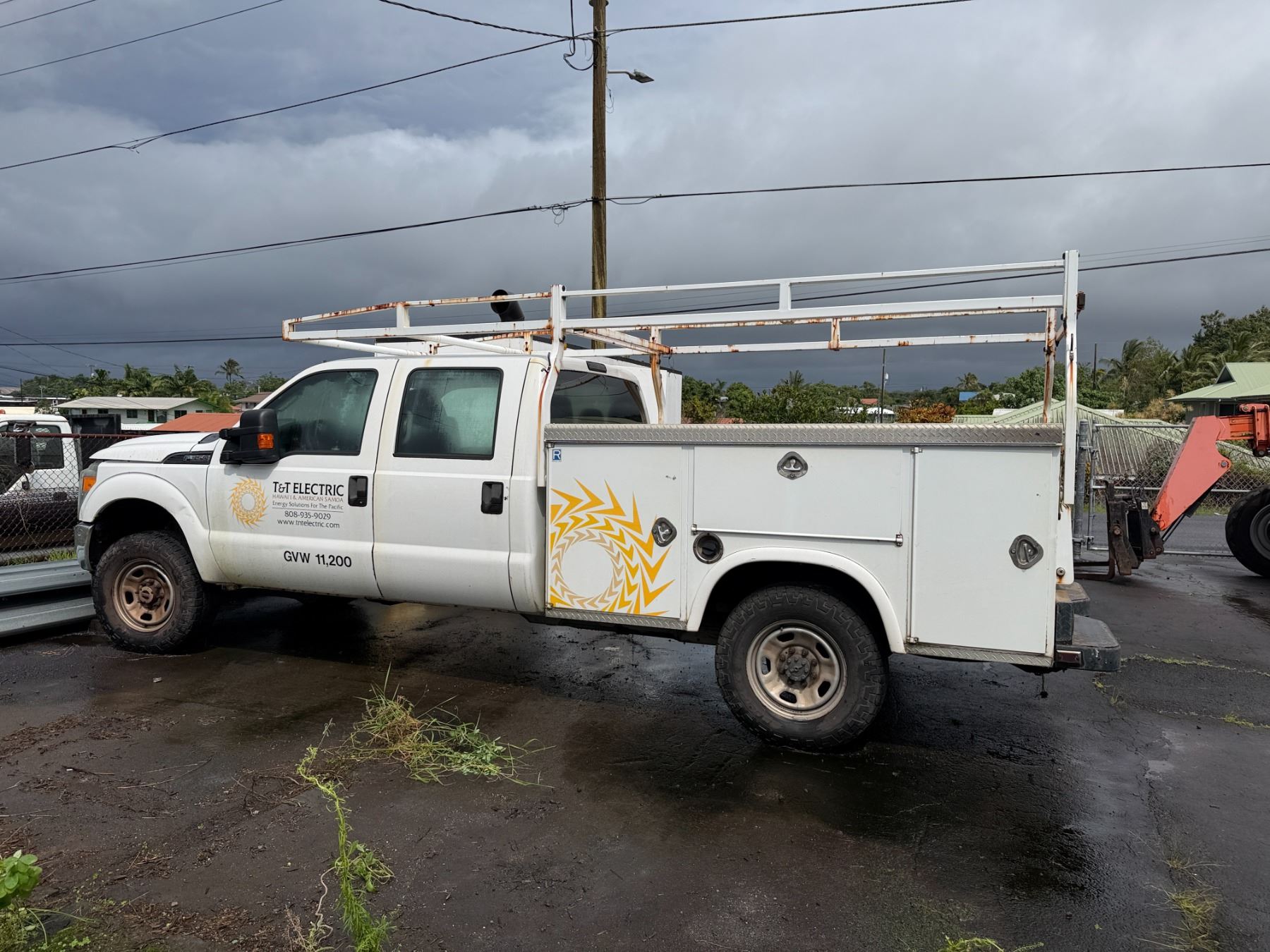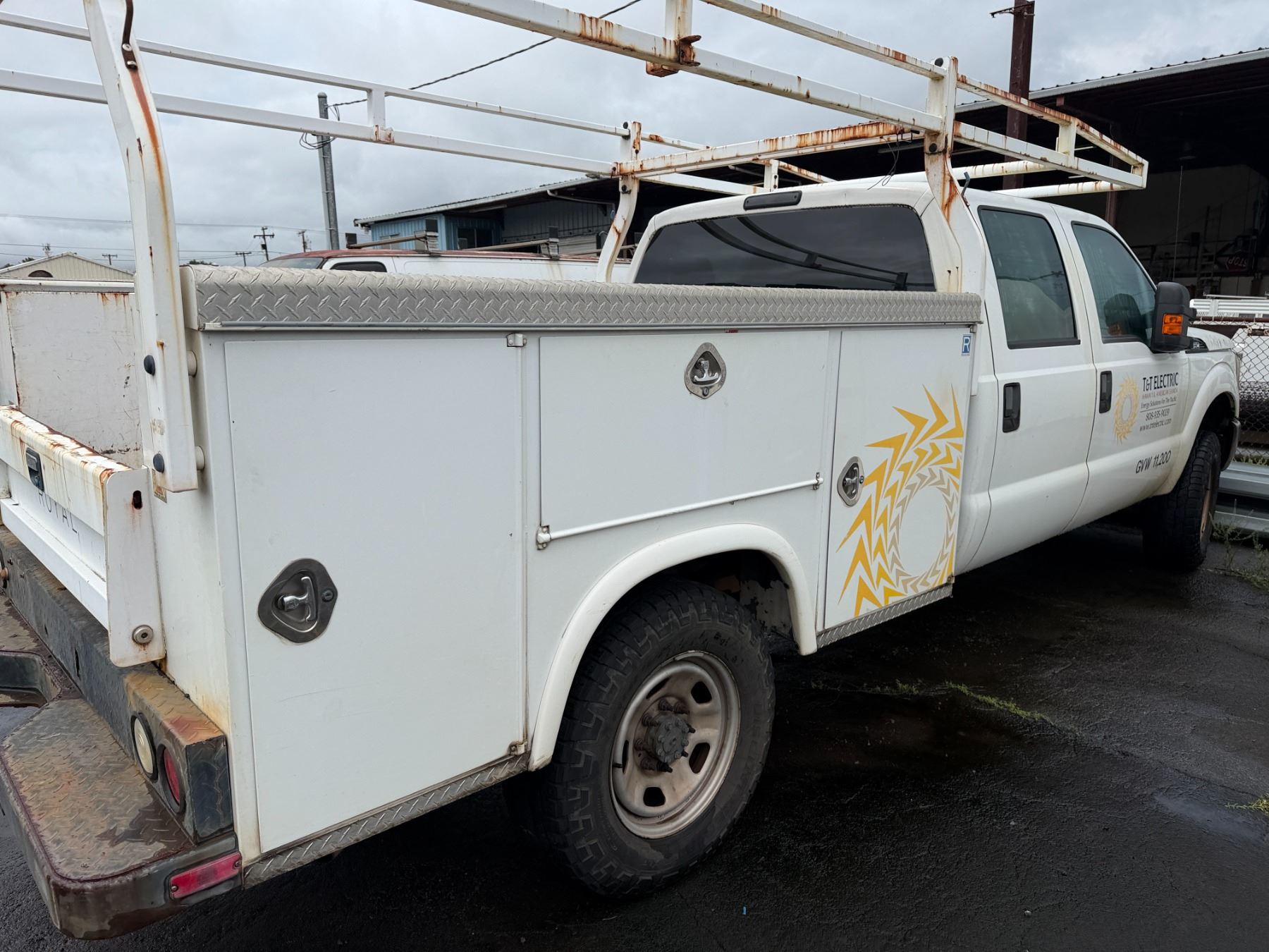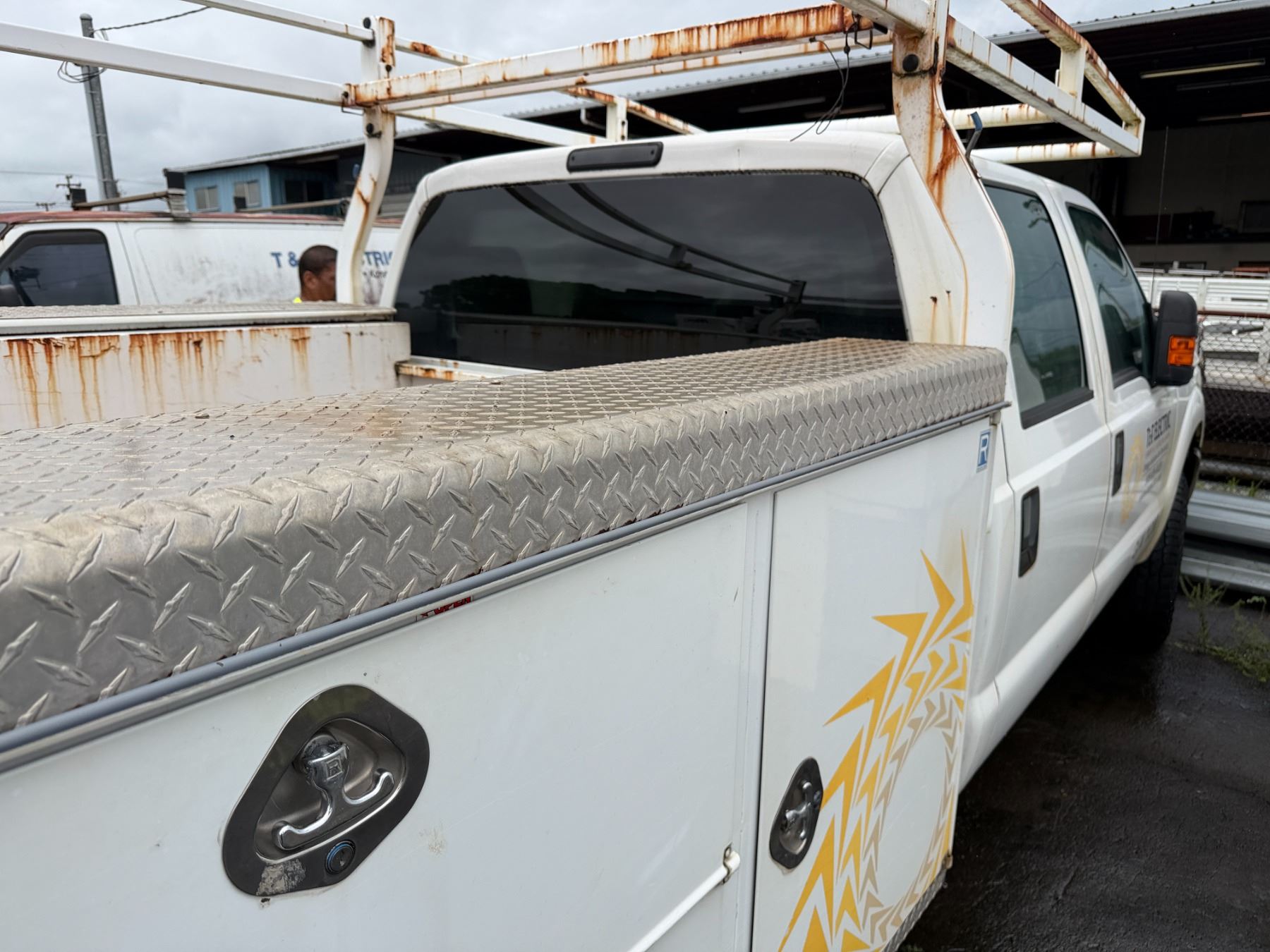 2015 Ford F350 Crew Cab Truck with service body and roof rack.
