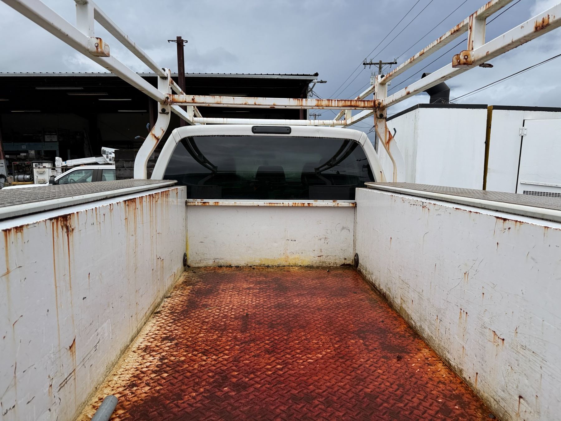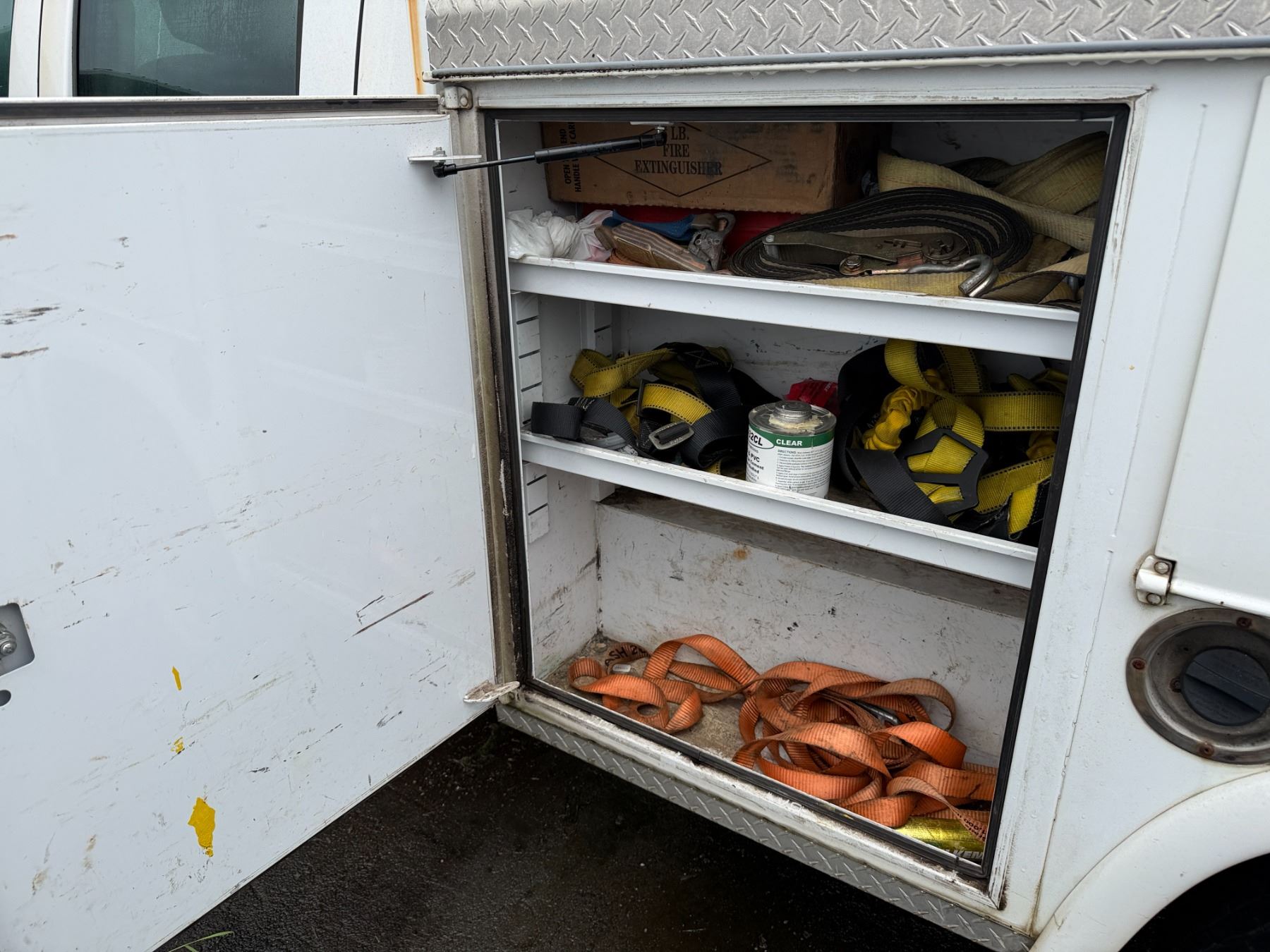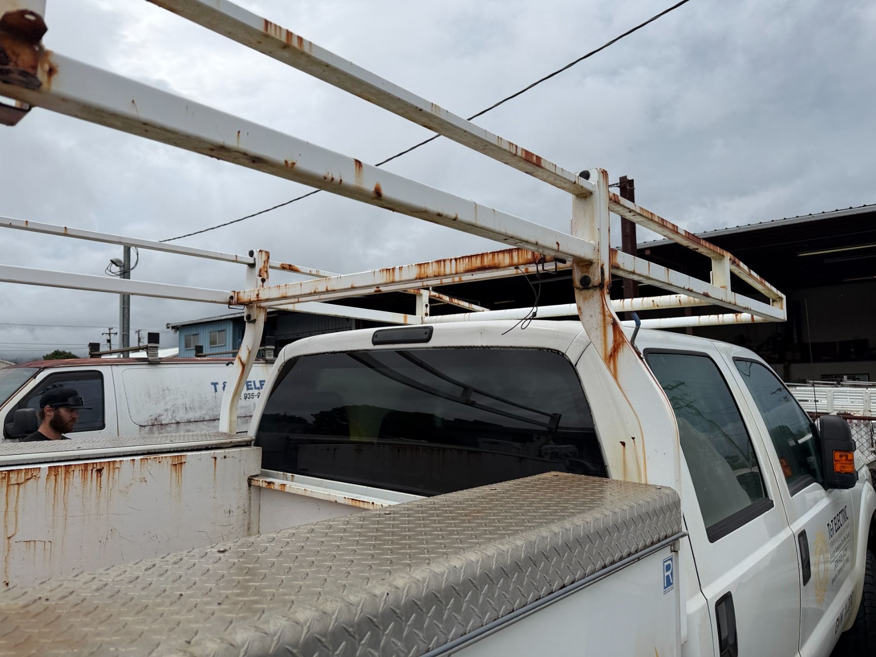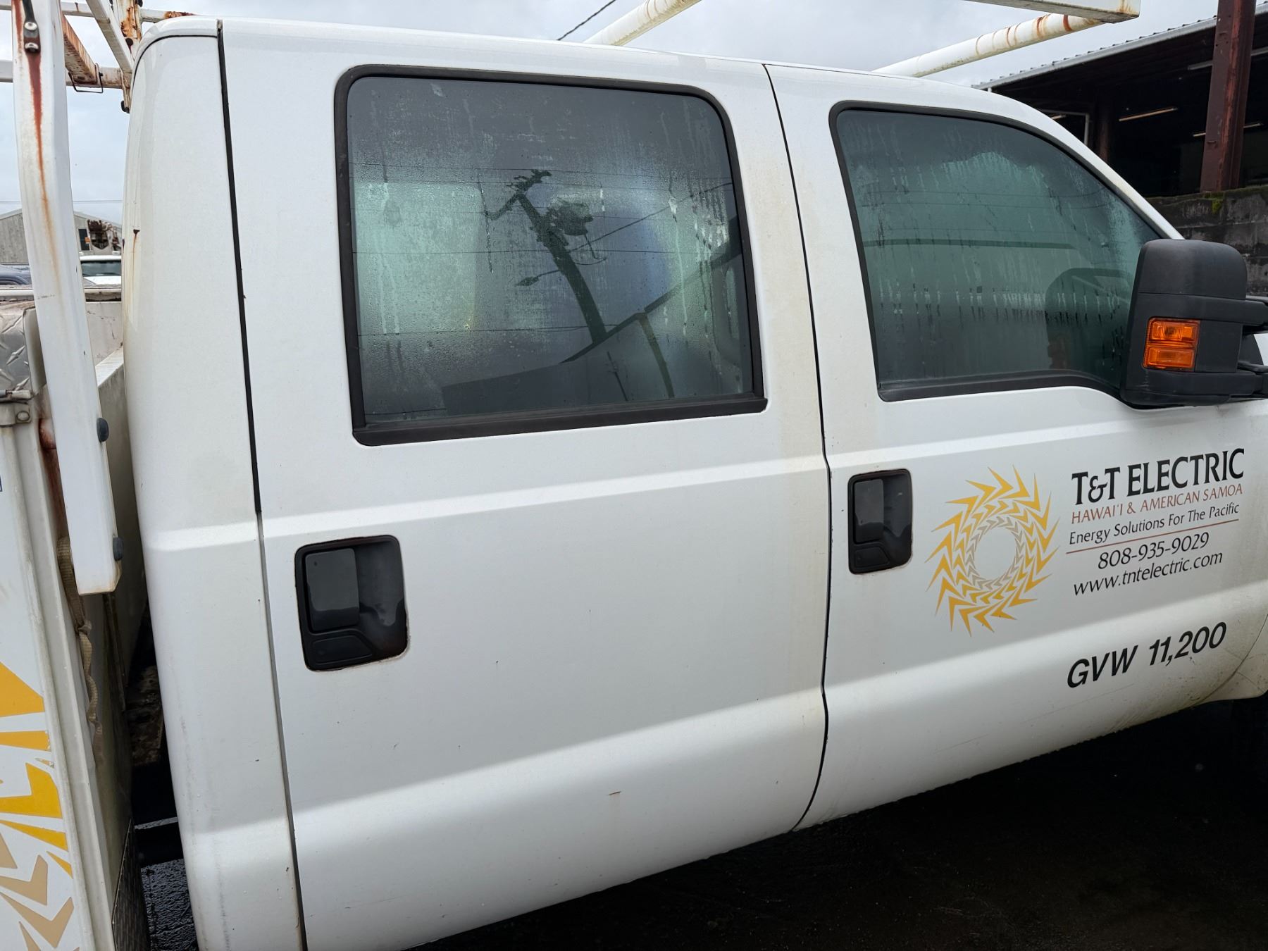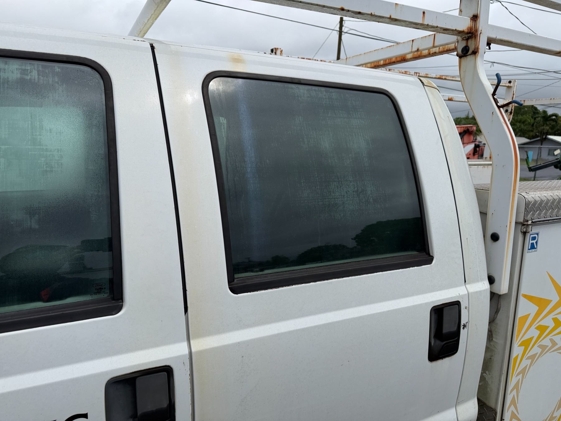 2015 Ford F350 Crew Cab Truck with service body and roof rack.