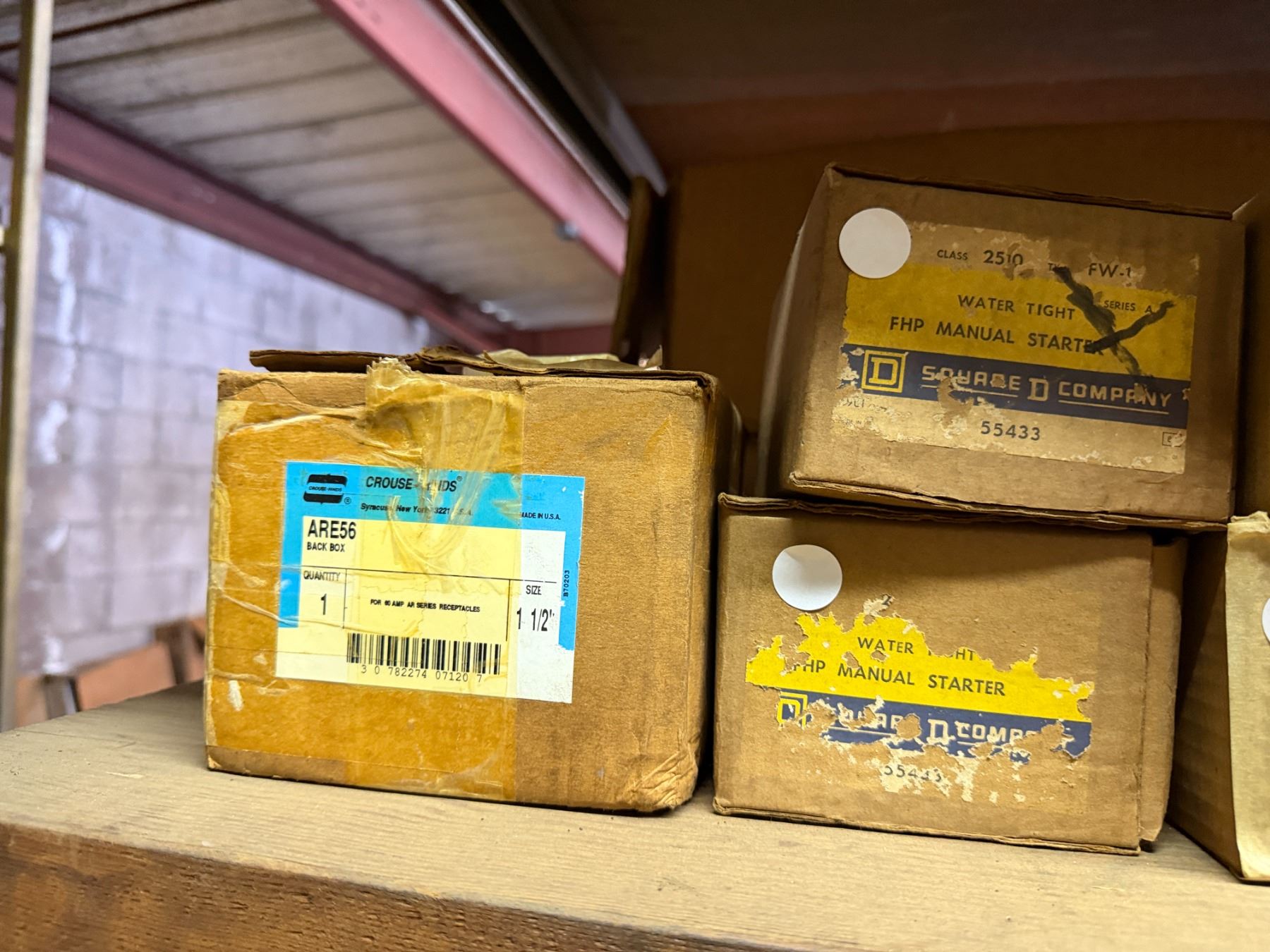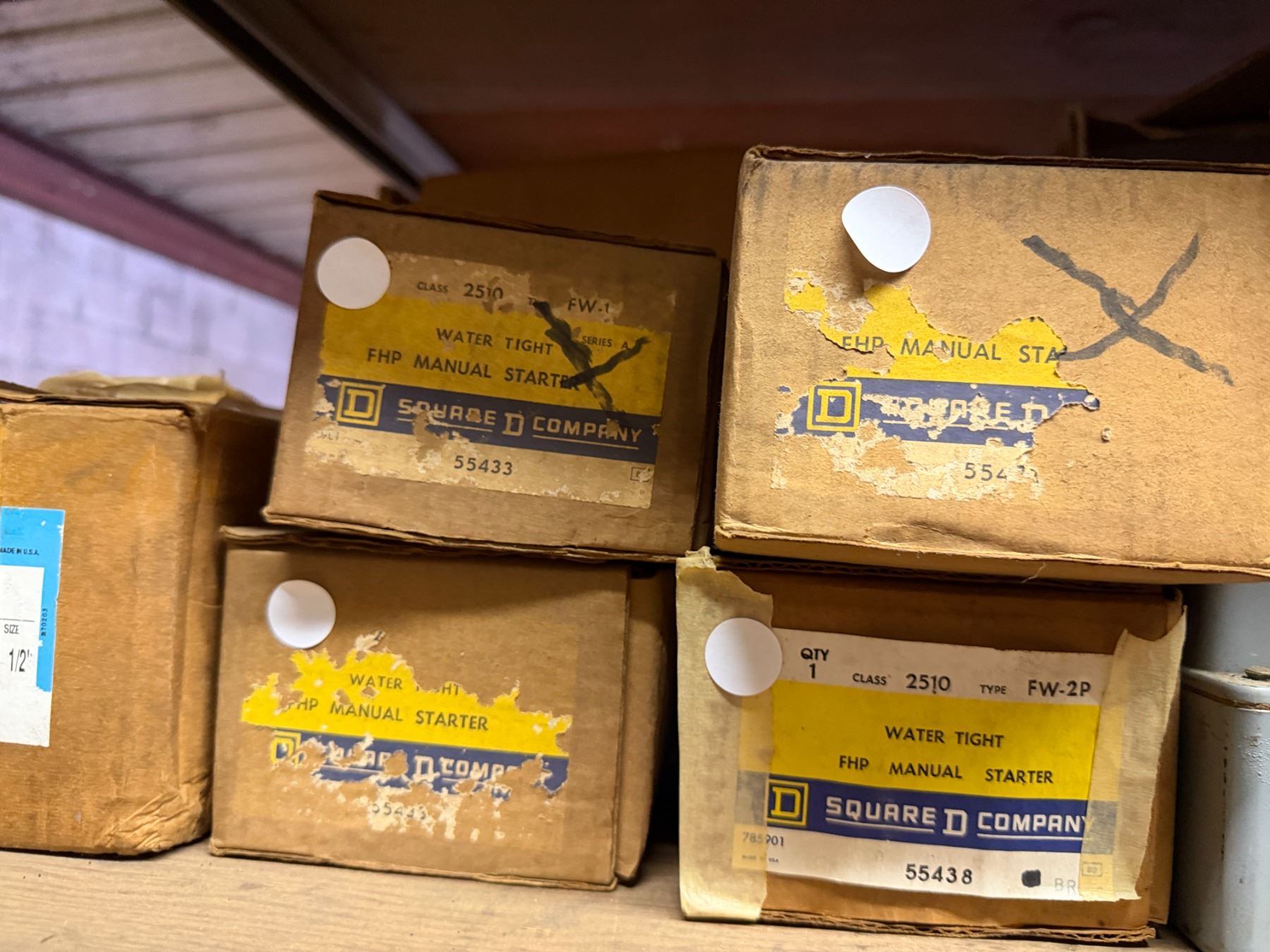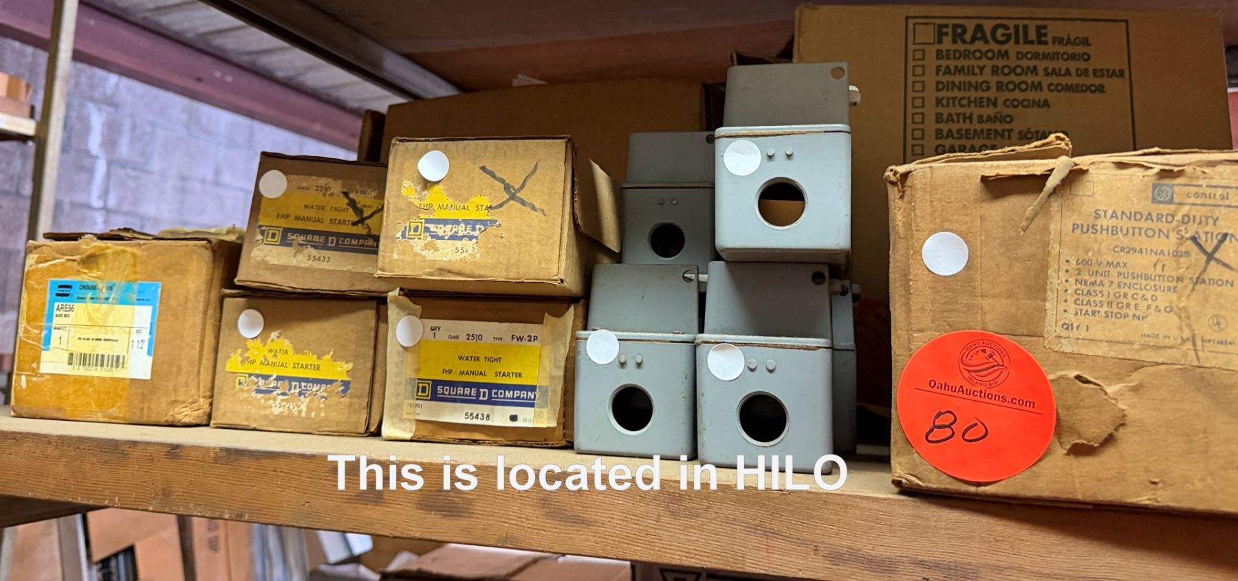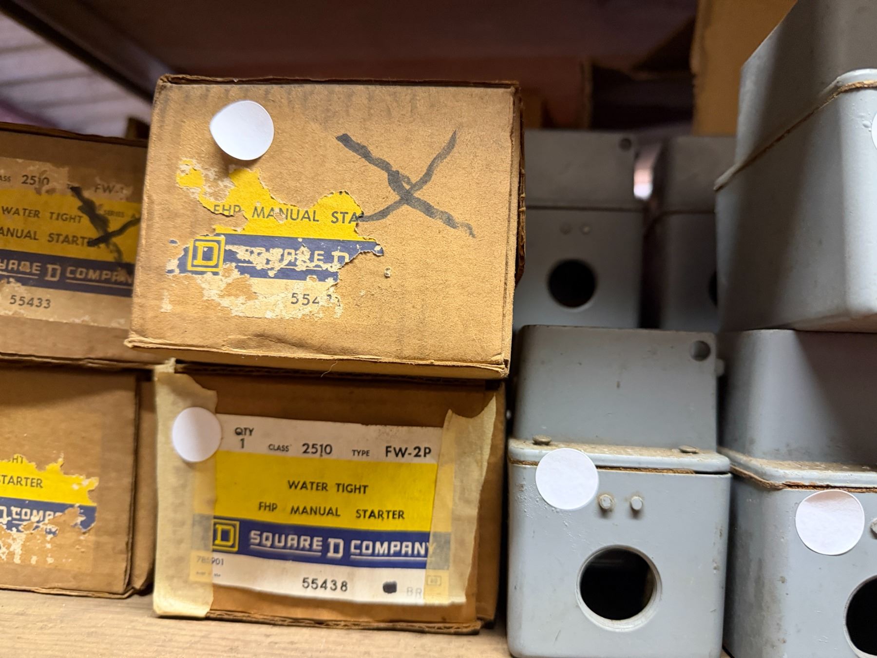 Lot 80 Multiple Square D Manual Starters, General Electric Pushbutton Stations, Enclosures, etc