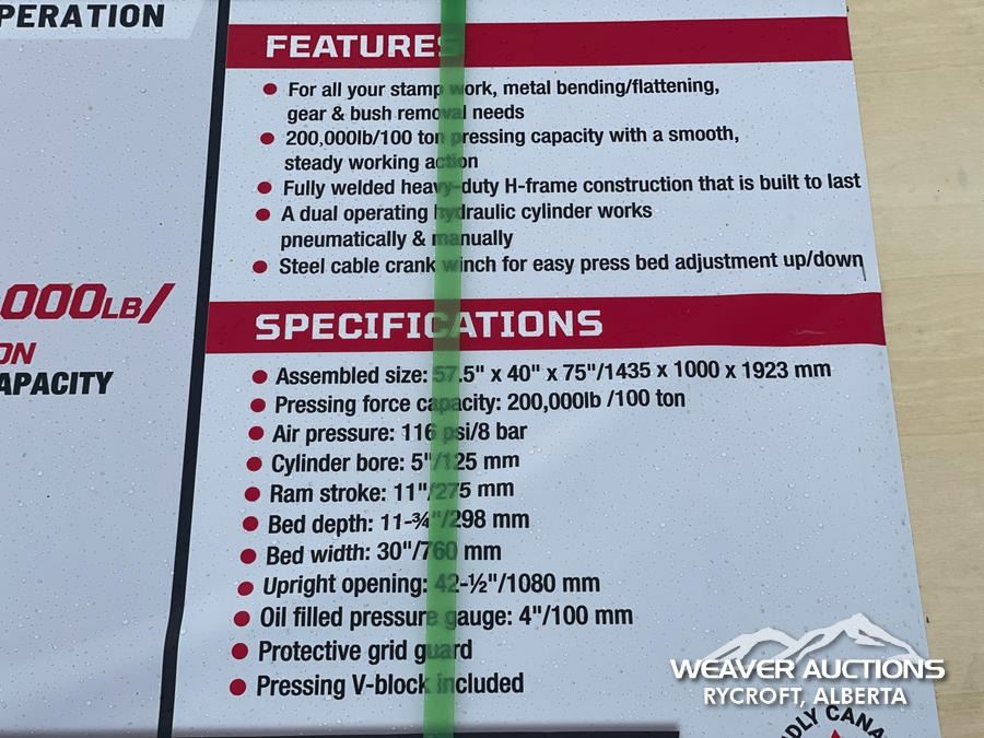 Specifications: *UNUSED, HEAVY DUTY PRESSING