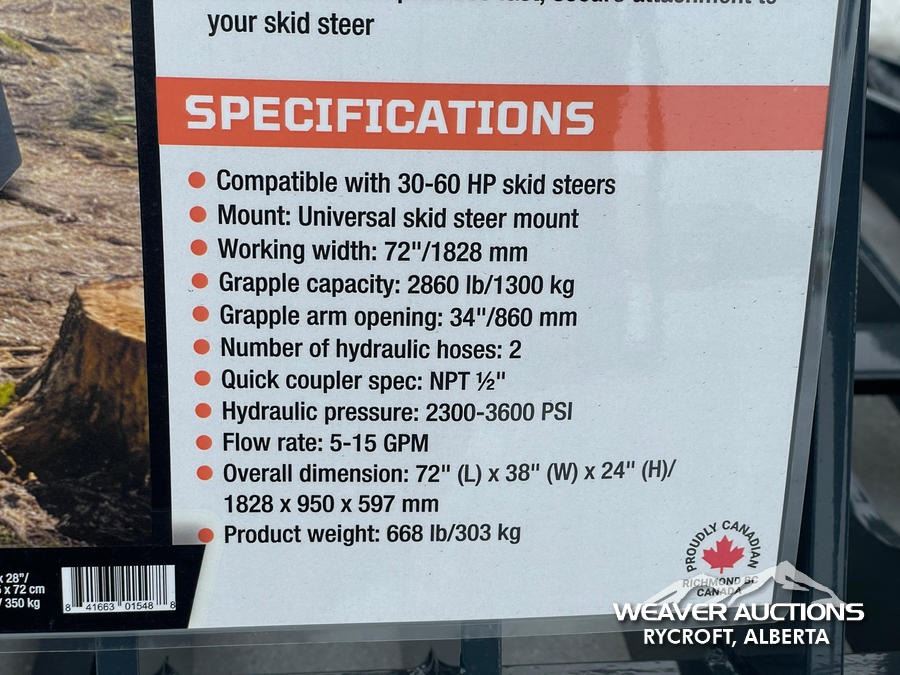Lot 603 TMG 72 IN. SKID STEER SKELETON GRAPPLE