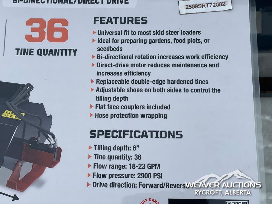Specifications: *UNUSED, 6 IN. TILLING DEPTH