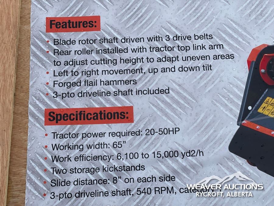 Specifications: *UNUSED, 90 DEGREE TILT, 30-60 HP TRACTOR, 3 PT HITCH, PTO DRIVE SHAFT