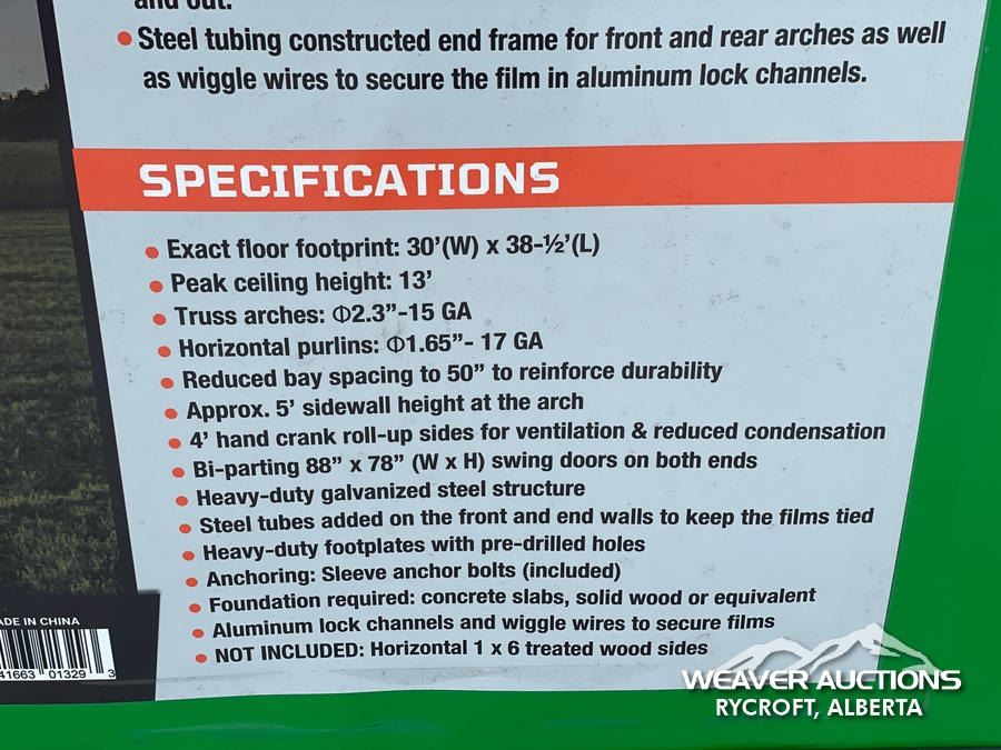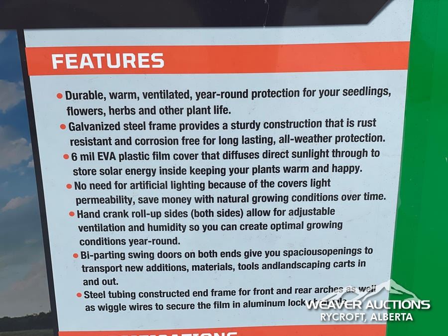 Specifications: *UNUSED, LENO MESH PVC COVER, GALVANIZED STEEL FRAME, ROLL-UP WINDOWS