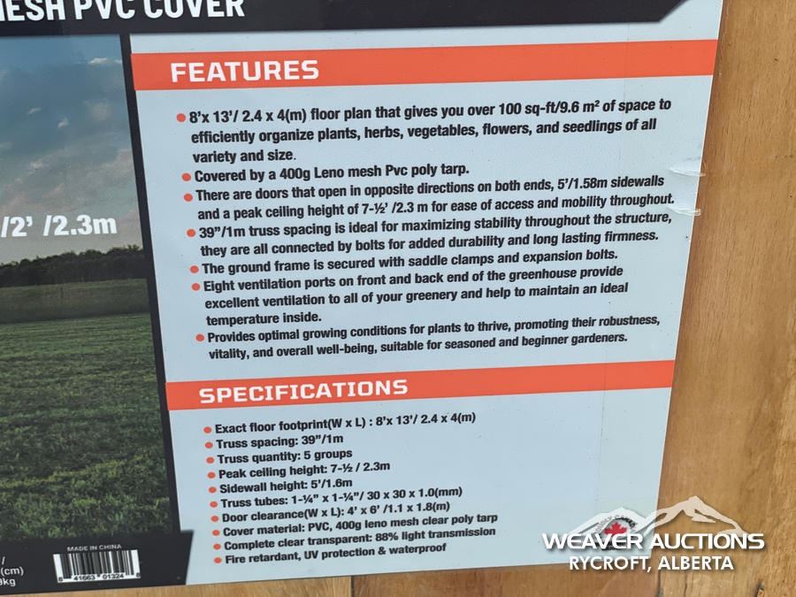 Lot 695 TMG 8 X 13 FT. GREENHOUSE