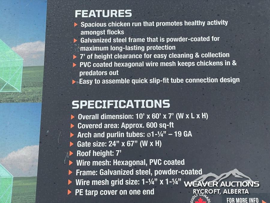 Lot 704 TMG 10 X 60 FT. WIRE MESH CHICKEN RUN SHELTER