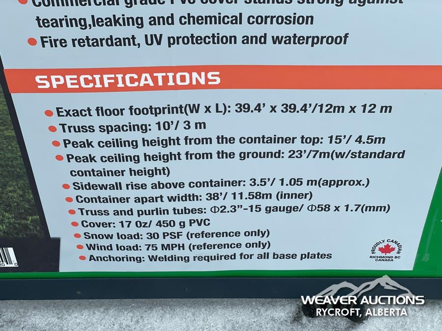 Lot 666 TMG 40 X 40 FT. DUAL TRUSS CONTAINER SHELTER