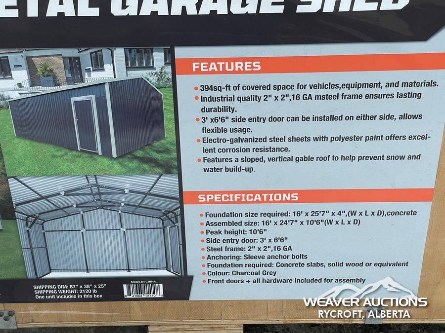 Lot 672 TMG 16 X 24 FT. METAL GARAGE SHED