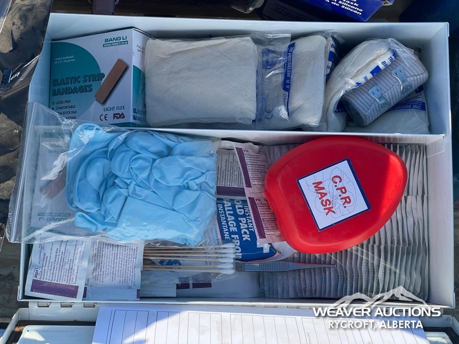 Specifications: FIRST AID KIT, OFFICE PRINTER, JACK STANDS, MASK FILTERS, DISPOSABLE COVERALLS