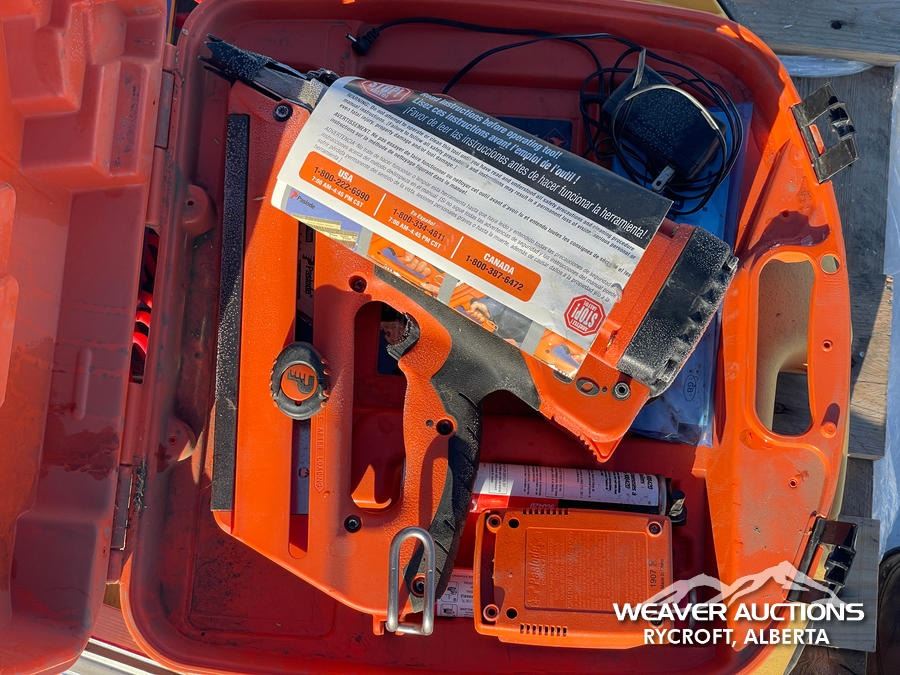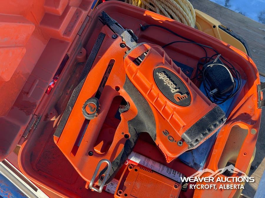 Specifications: (2) NAIL GUNS, MASTERCRAFT 2 GALLON AIR COMPRESSOR, ELECTRIC DRILL, AIR TOOL KIT, CHALKLINE REEL