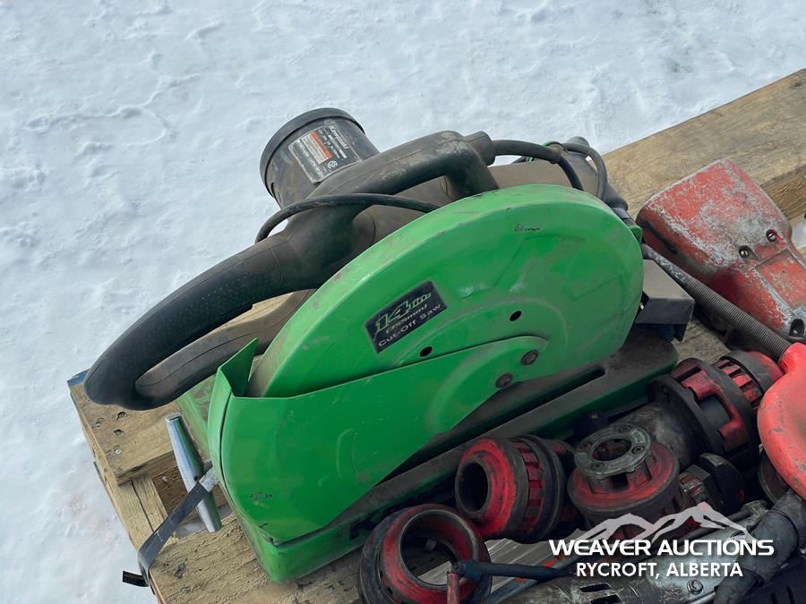 Lot 1060 14 IN. CUT OFF SAW W/PIPE THREADERS & MISC TOOLS