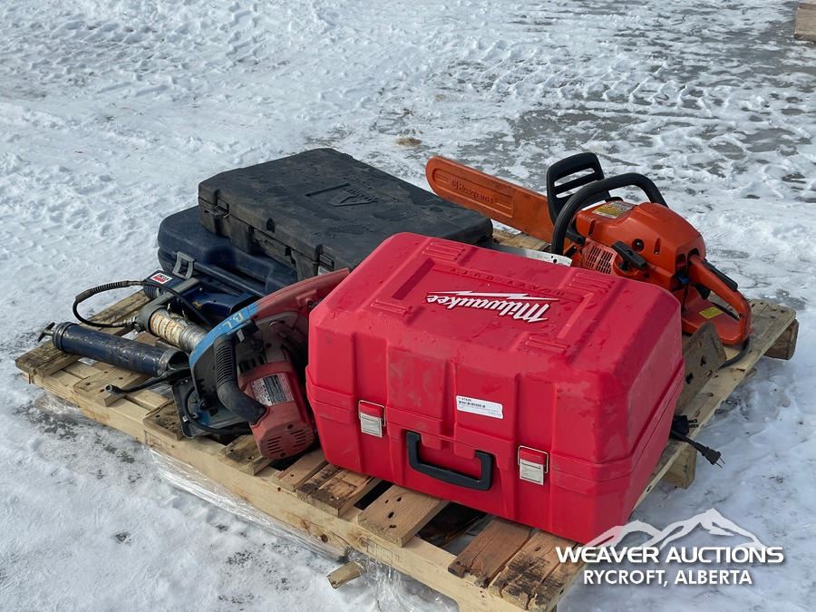 Specifications: (6) GREASE GUNS, HAND TOOLS, SAW