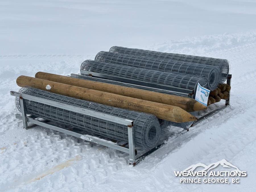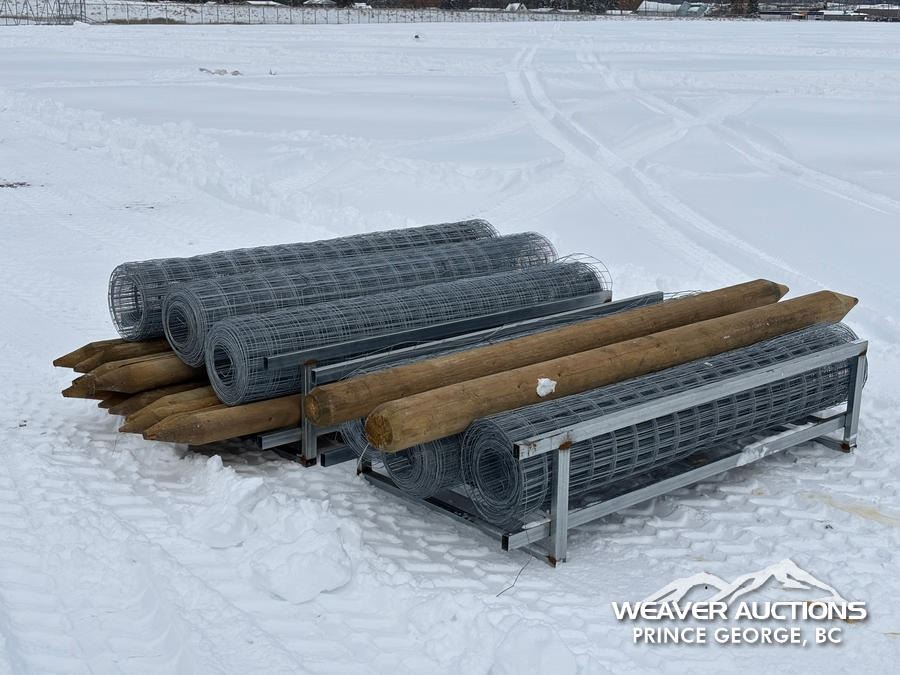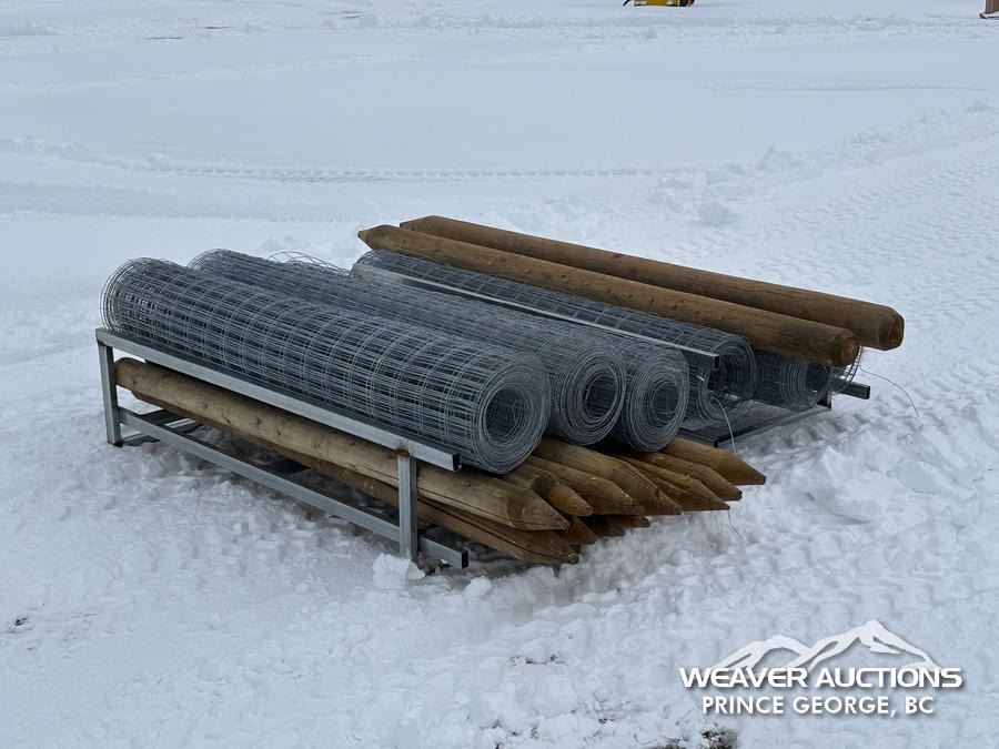 Lot 2014 (6) ROLLS OF GALVANIZED FENCE W/ (14) WOODEN POSTS