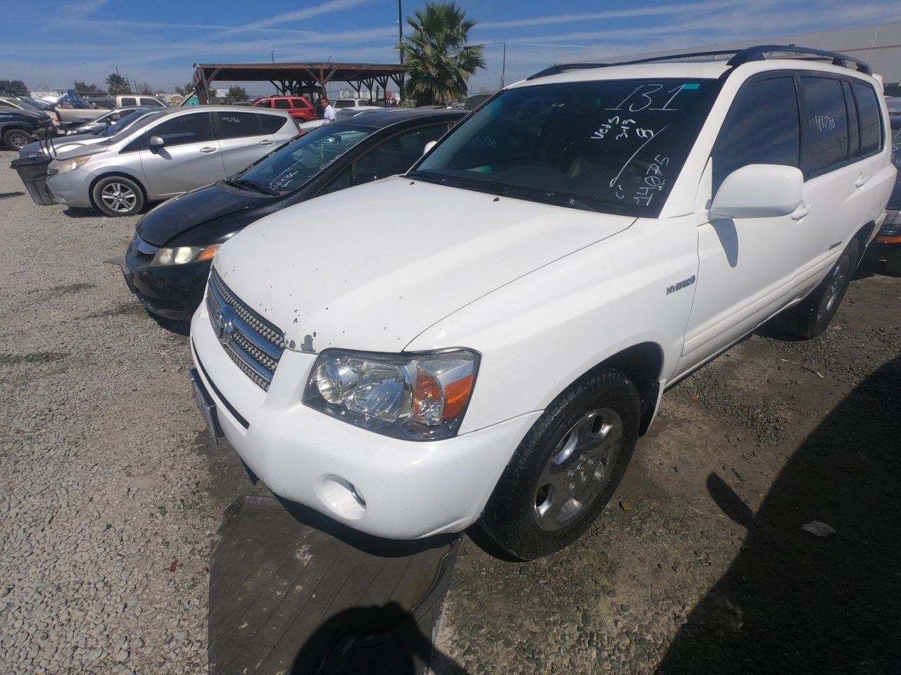 MAKE: TOYOTA || MODEL: HIGHLANDER || YEAR: 2006 || TITLE: T-DONATION || VIN: JTEDW21A160014075 || MILES: 186280 || ENGINE: 6 CYL / 3.3 L HYBRID || COLOR: WHITE || KEYS: YES