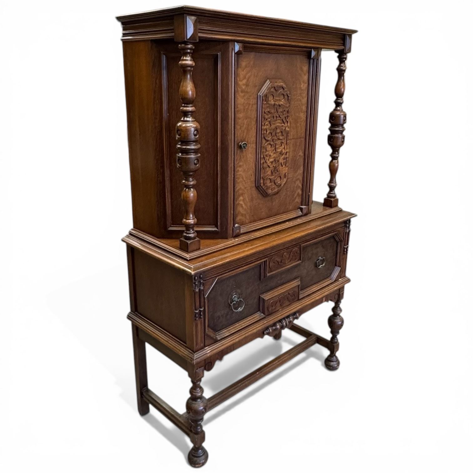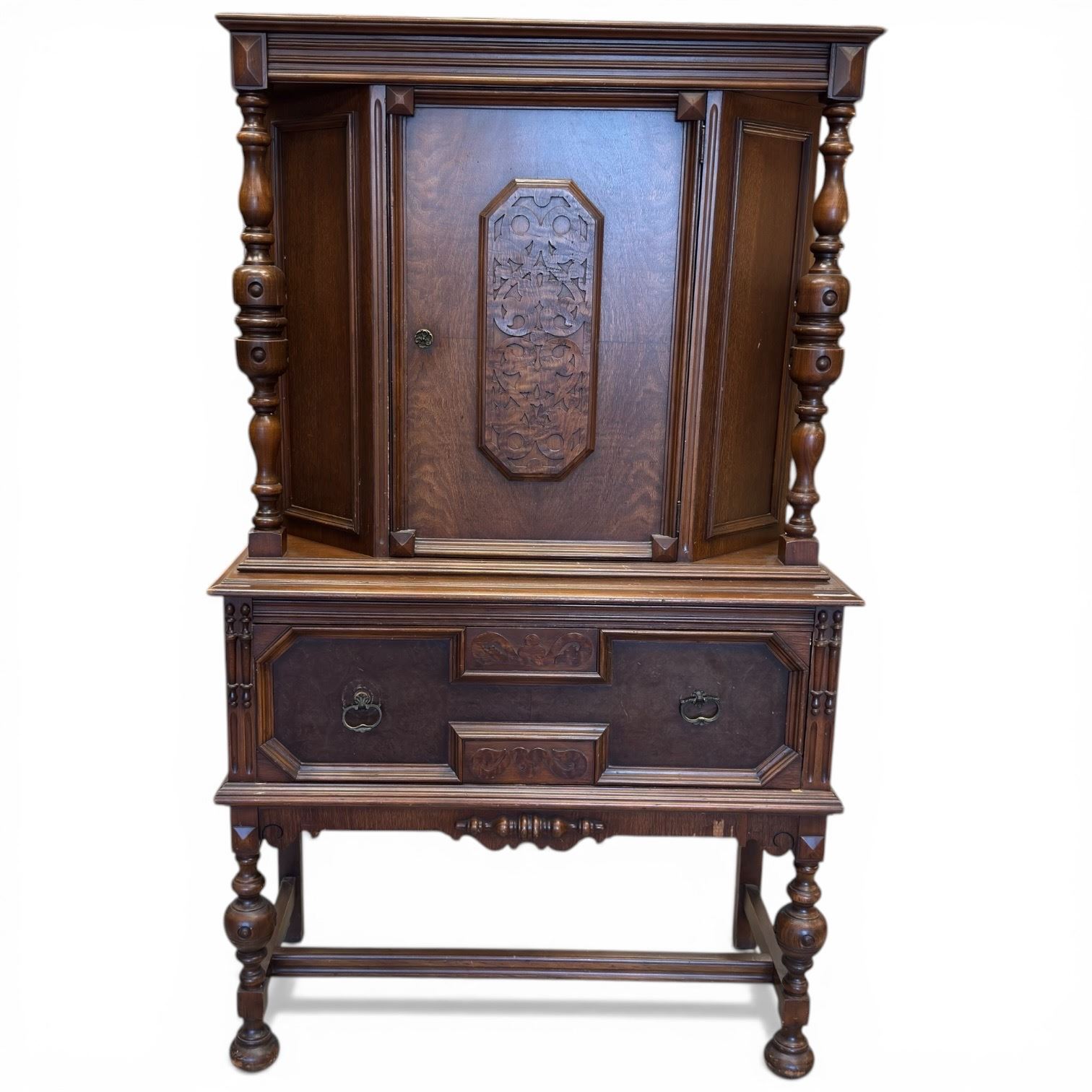 1920s Jacobean Revival Oak Cabinet (20" X 38" X 63" Tall)