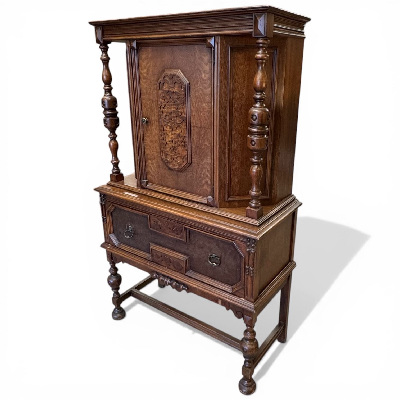 Lot 20 1920s Jacobean Revival Oak Cabinet (20" X 38" X 63" Tall)