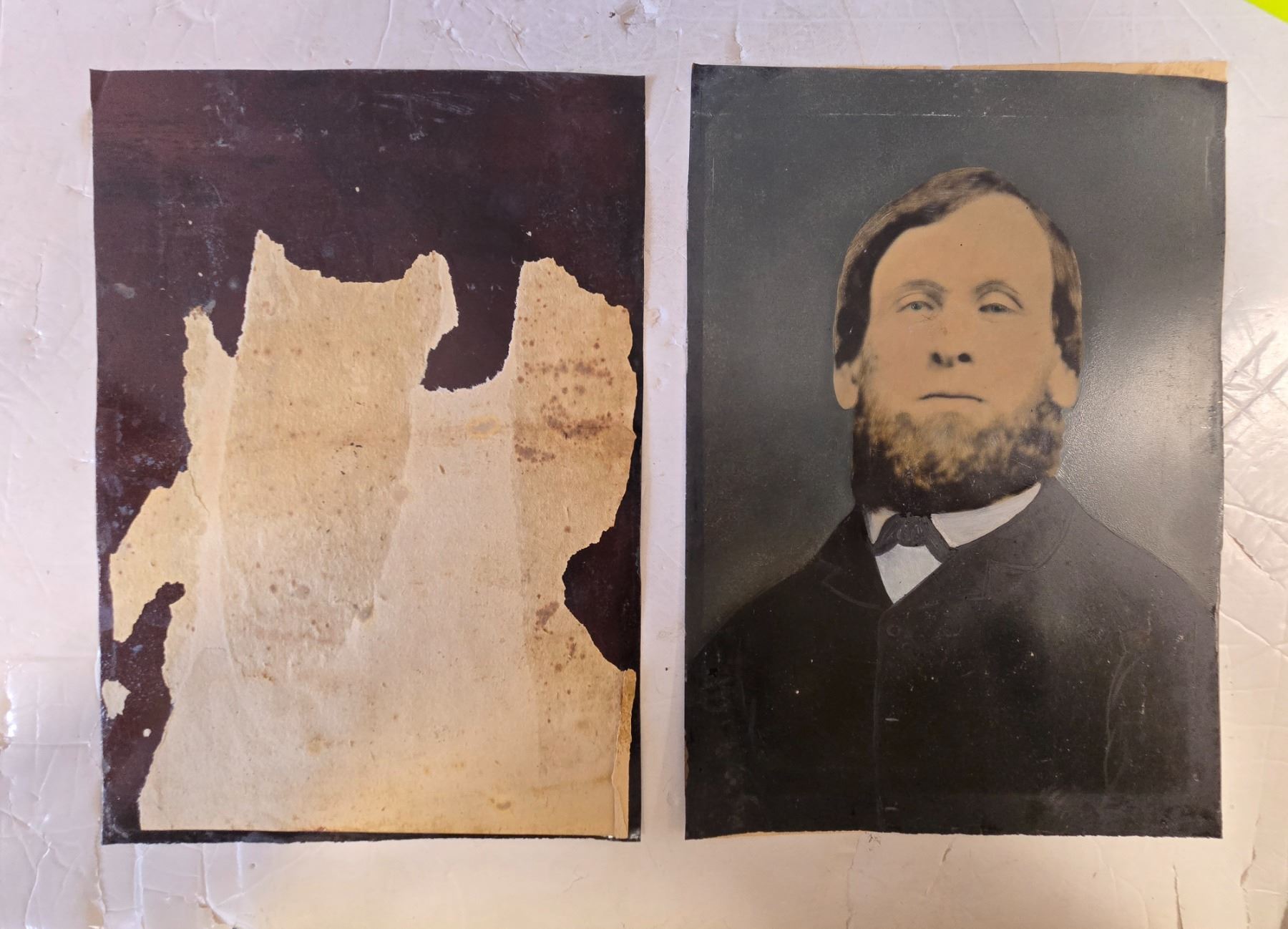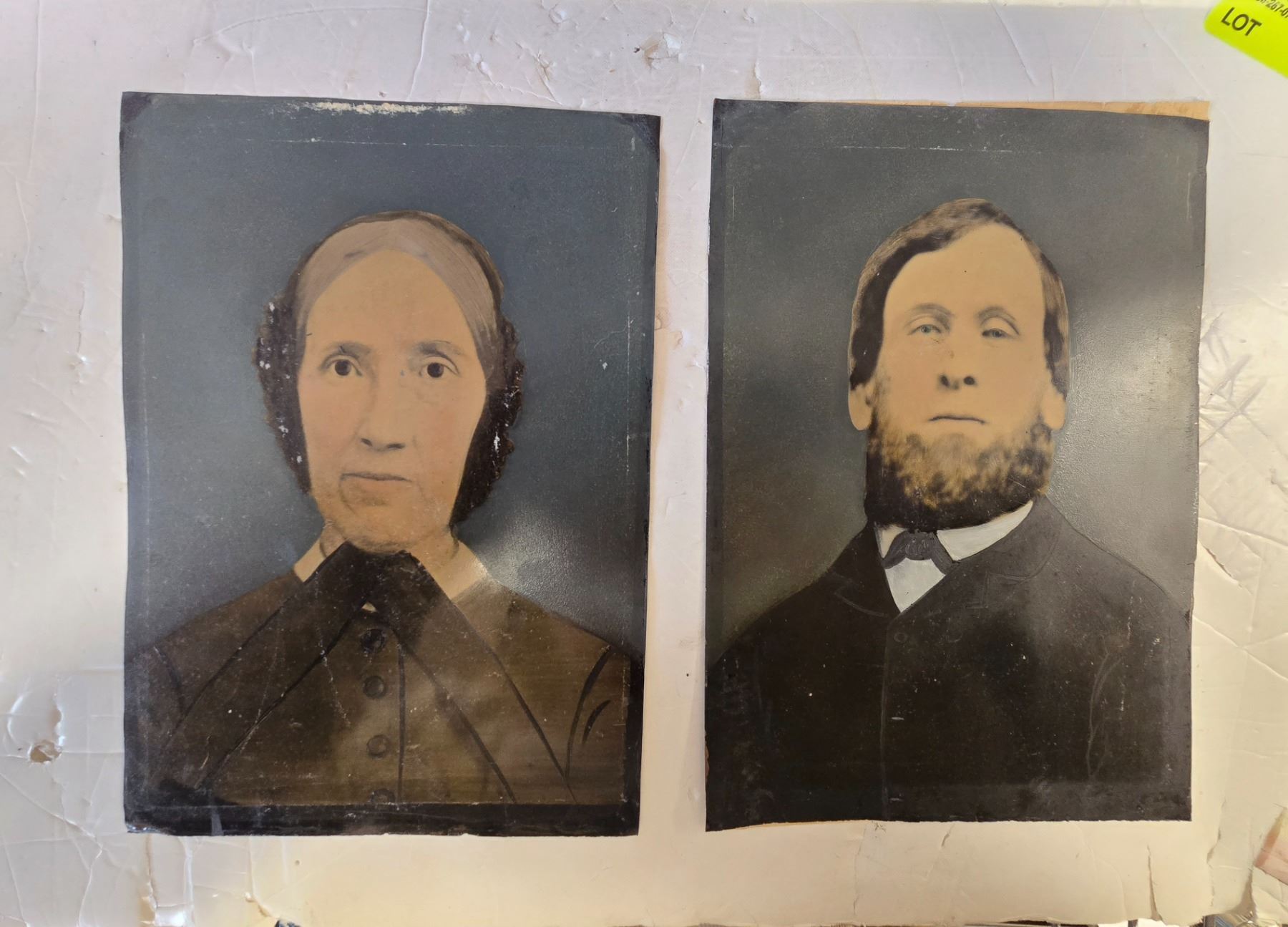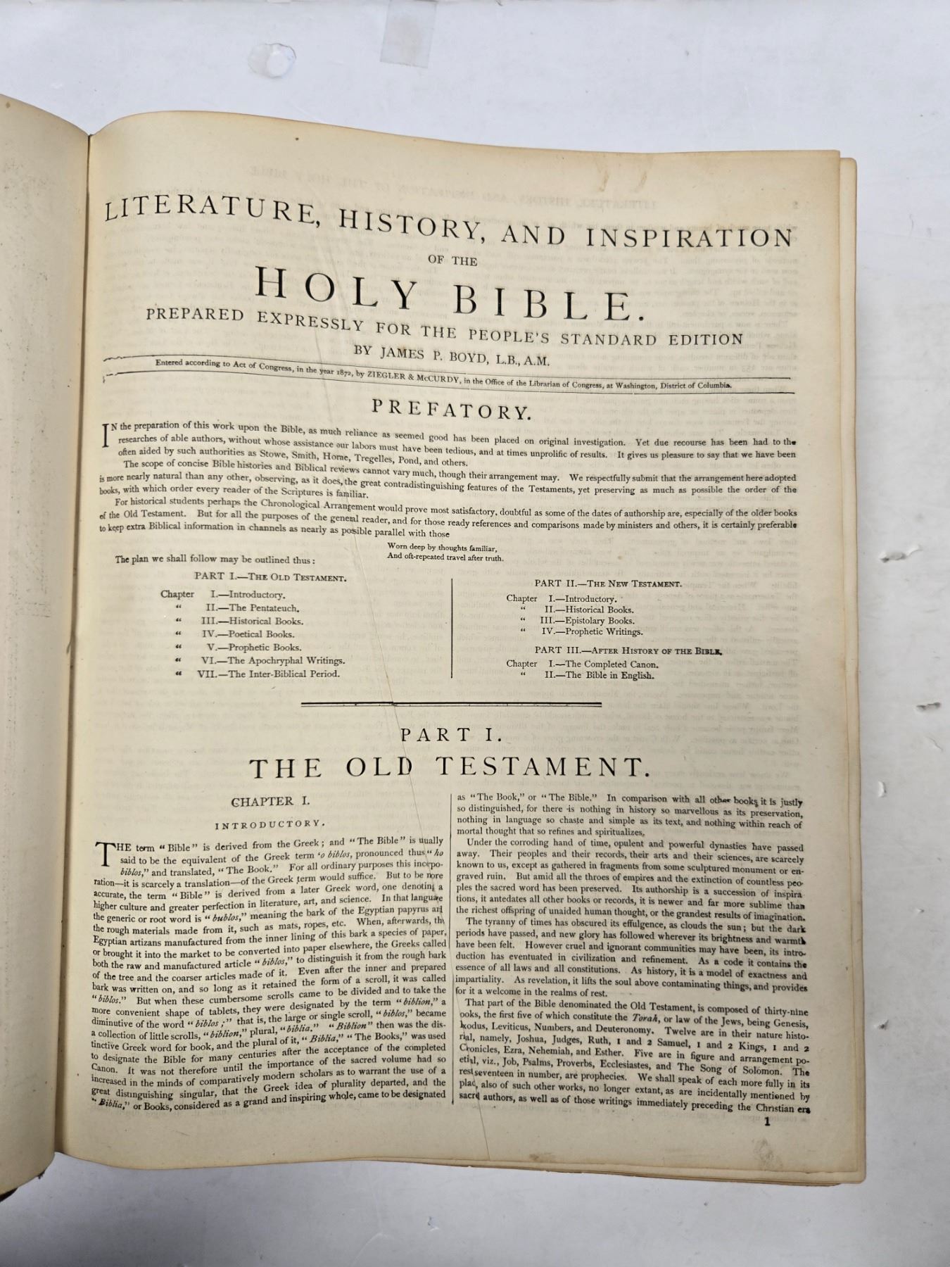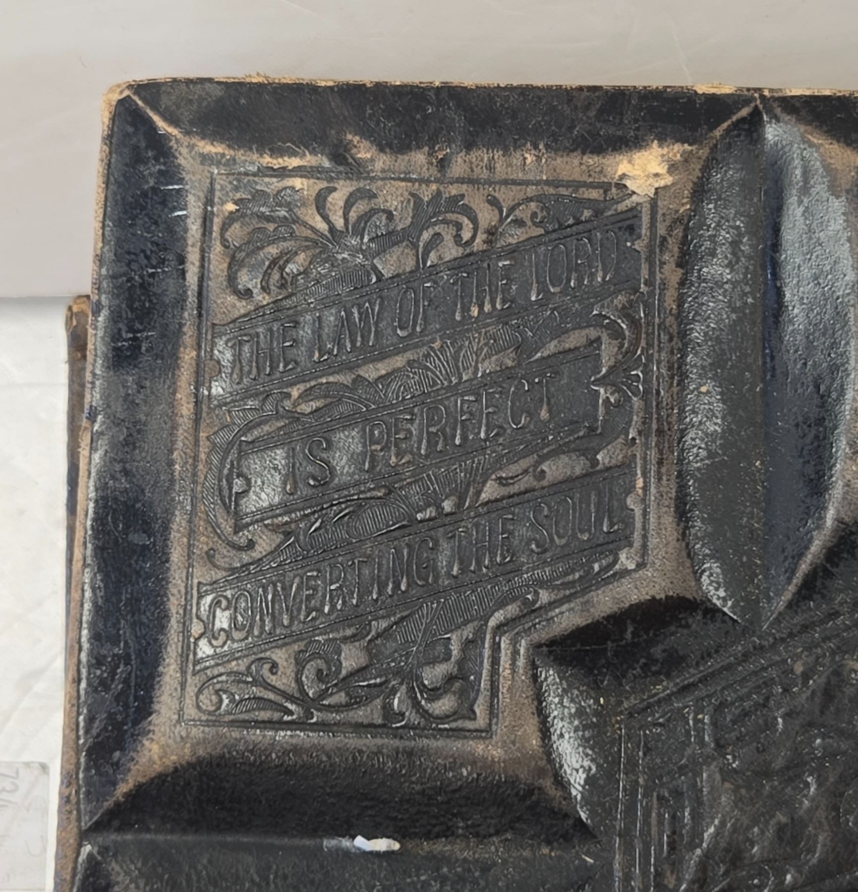 Lot 21 Large Leather Bound Antique Bible with 1882 Inscription & 2 Tin Type Family Photos (Peoples Standard