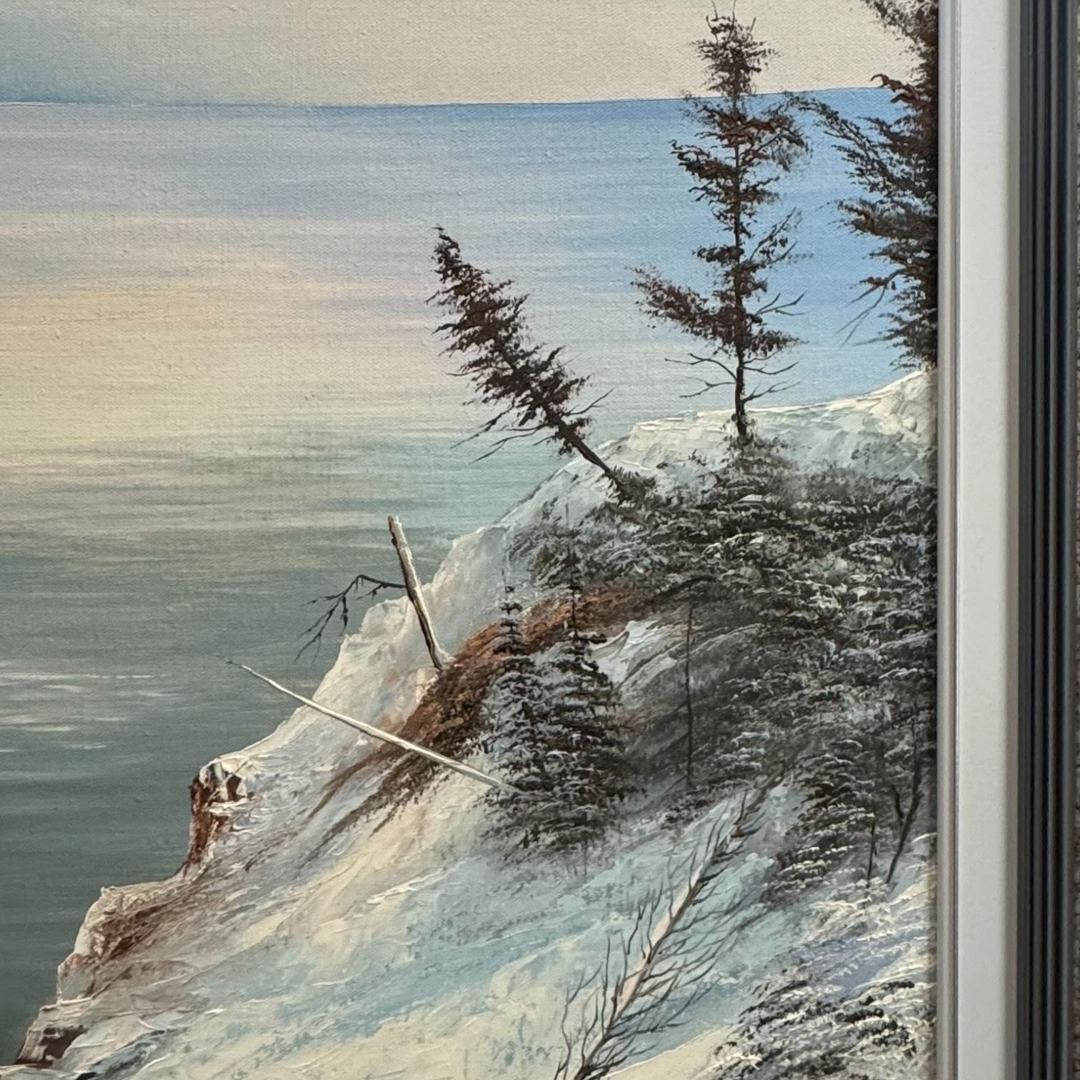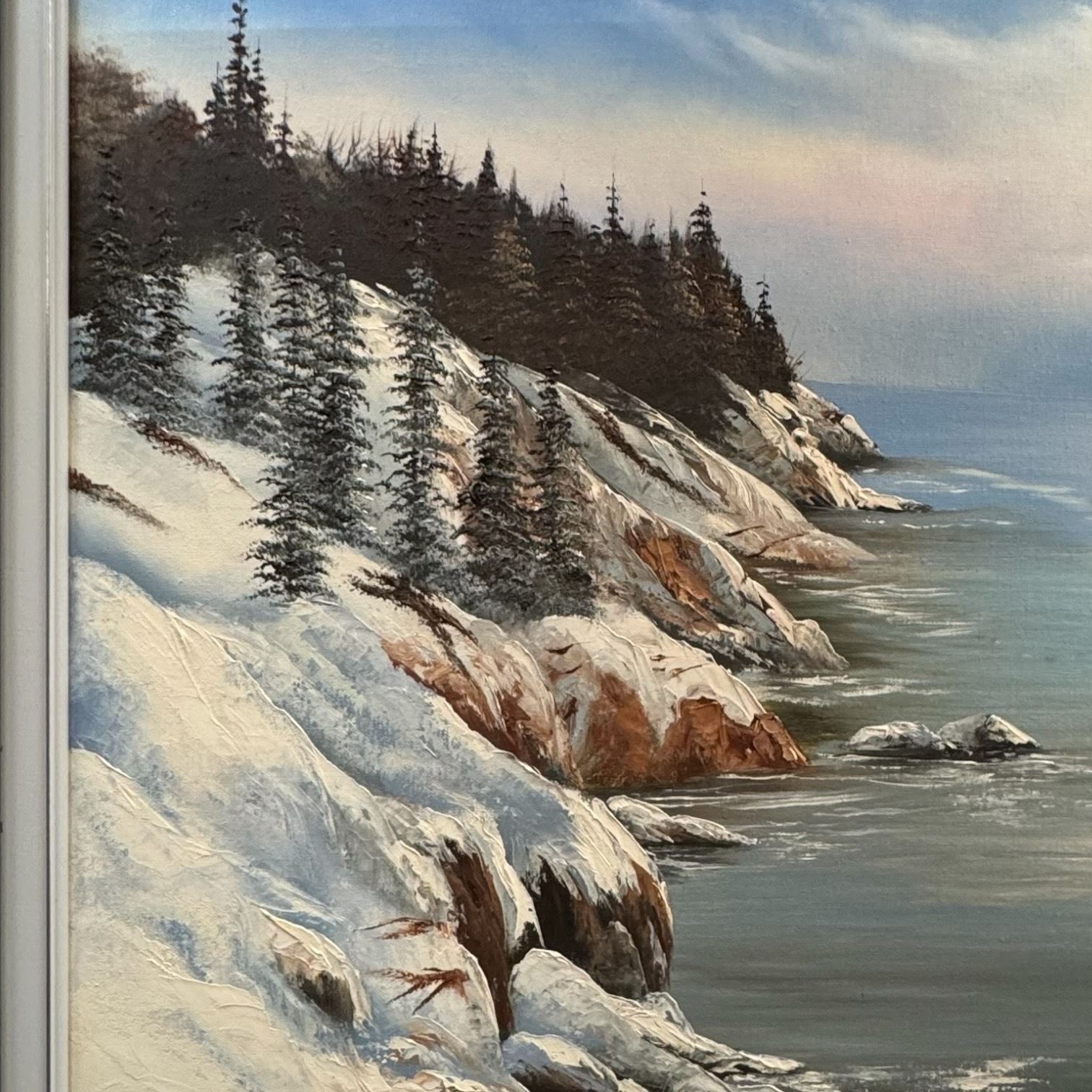 Signed Original David Preston Oil on Canvas Painting "Winter Oceanscape" * Frame dimensions: 30" x 41"