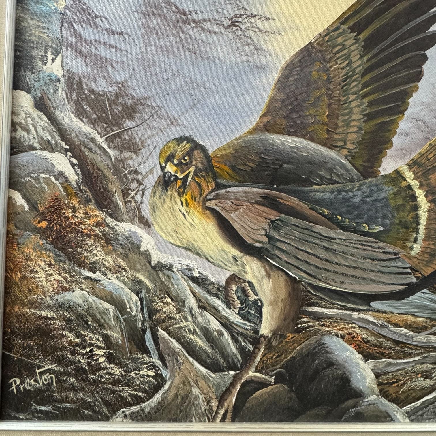 Signed Original David Preston Oil on Canvas Painting "Ruffed Grouse" * Frame dimensions: 25" x 21"
