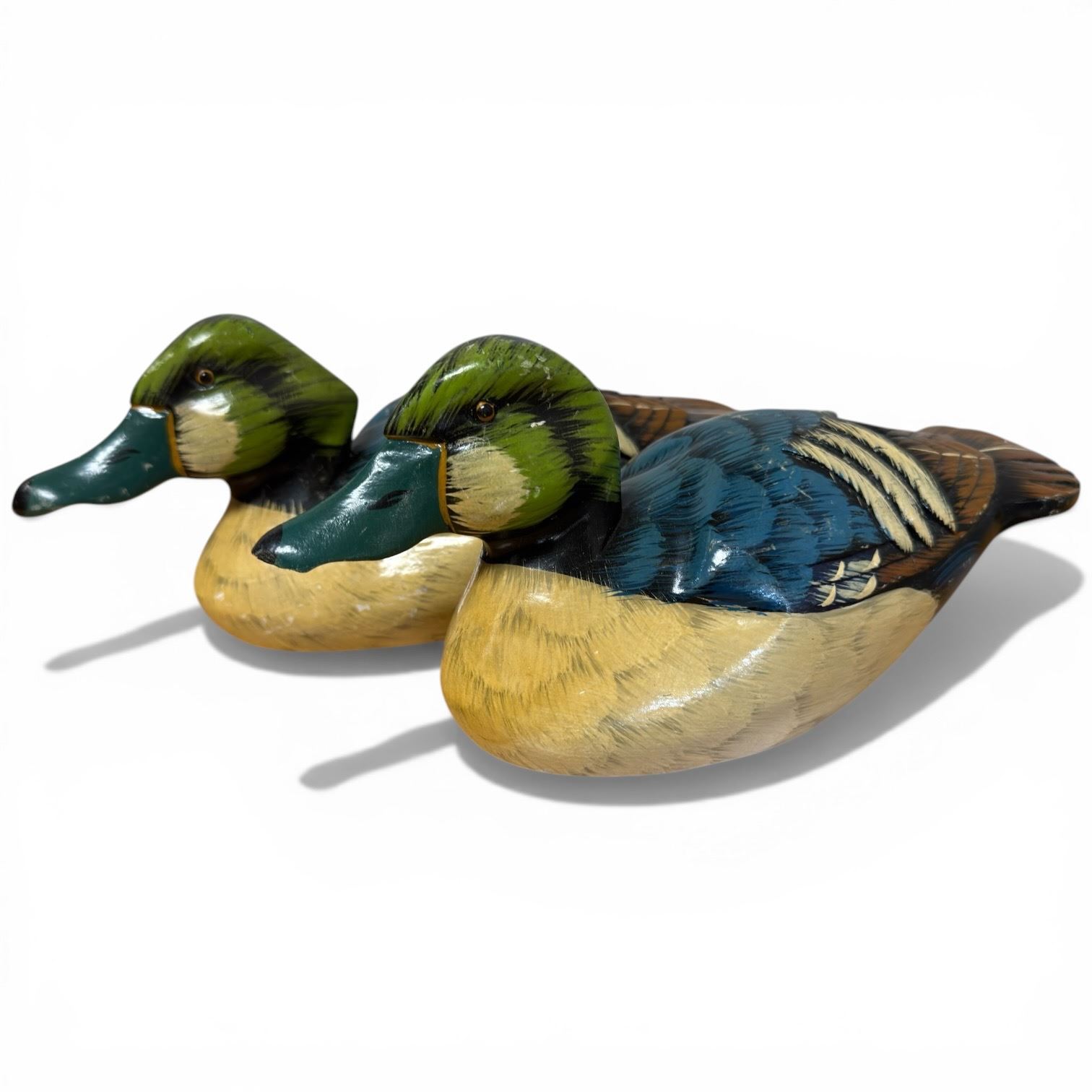 Lot 50 2 Wood Ducks and 3 Wall Hanging Wood Ducks * Longest Duck is 11"