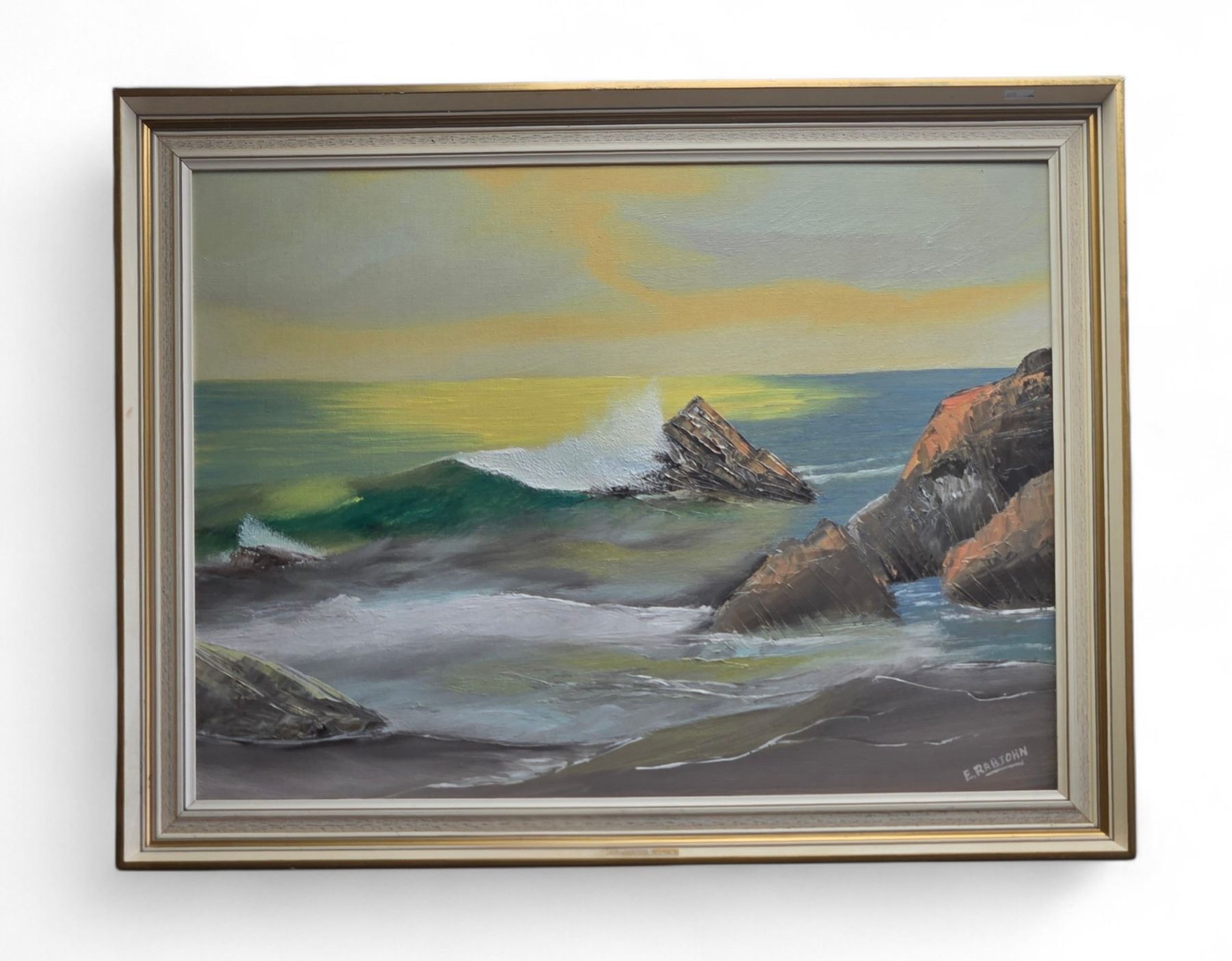 Lot 59 E. Rabjohn Signed Original Oil Painting "Pacific Sunset West Coat Vancouver Island" (Framed Dimensio